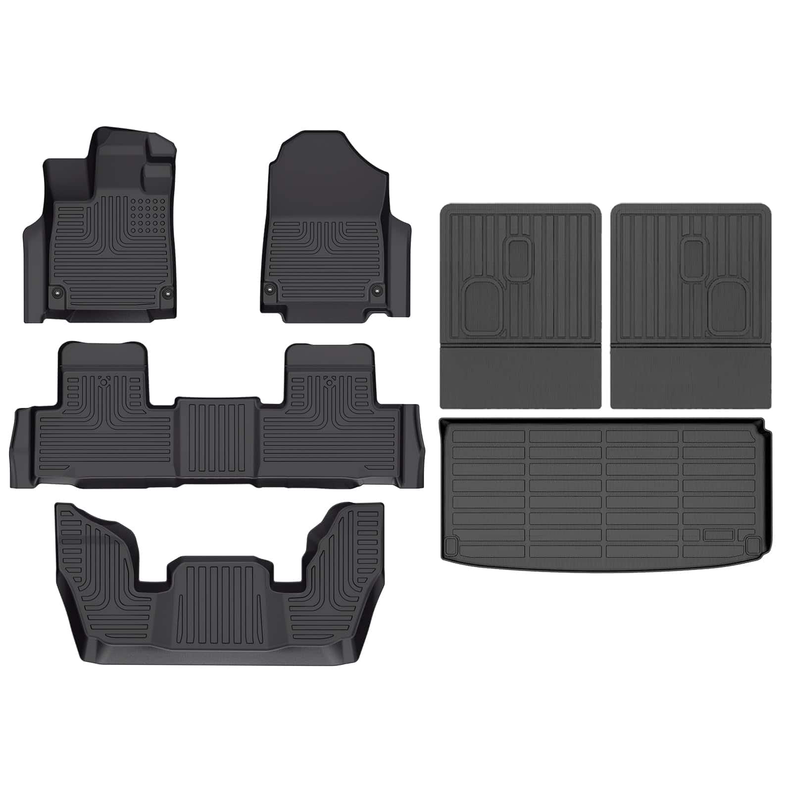1. Ajuste preciso El set de tapetes AZYT incluye 1 set de tapetes para piso | 1 protector de carga y 1 detrás de la tercera fila, ajuste para Acura mdx 2022-2025. Los tapetes para auto utilizan tecnología avanzada de escaneo láser 3D para cubrir precisamente la alfombra de su automóvil y ajustarse a su automóvil como un guante.