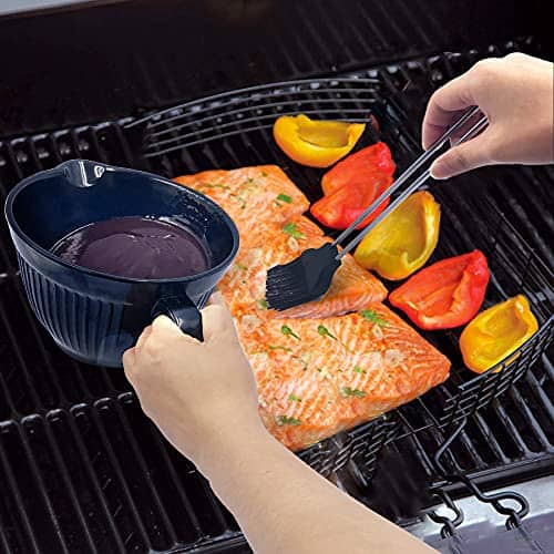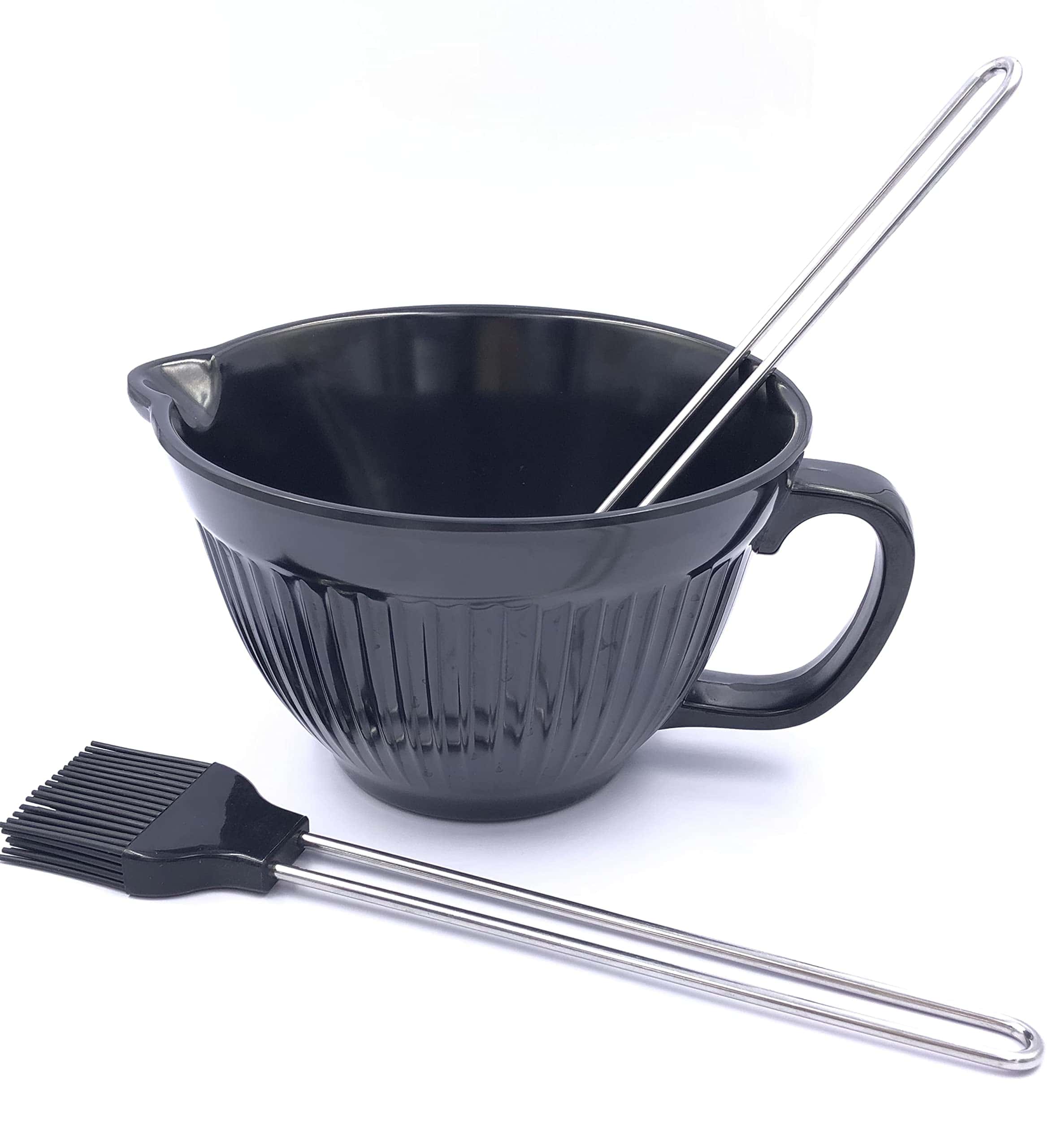 Set de 3 que incluye Tazón de salsa de melamina de alta calidad con mango + 2 pzas de pinceles de adobo de silicona de grado alimenticio con mangos de acero inoxidable 18/8.