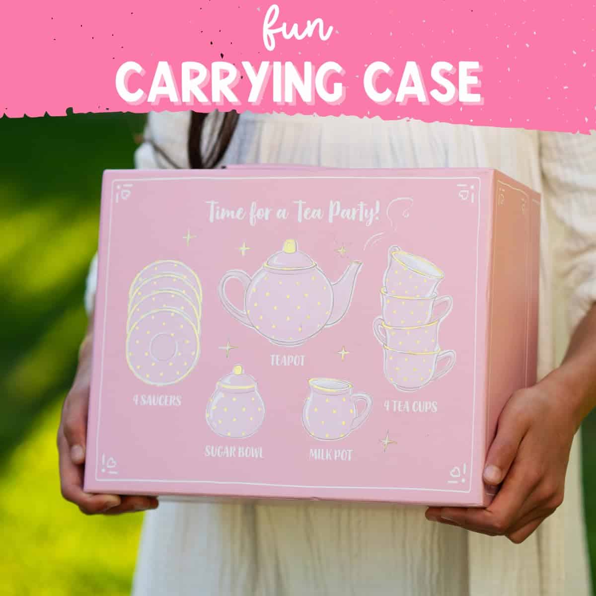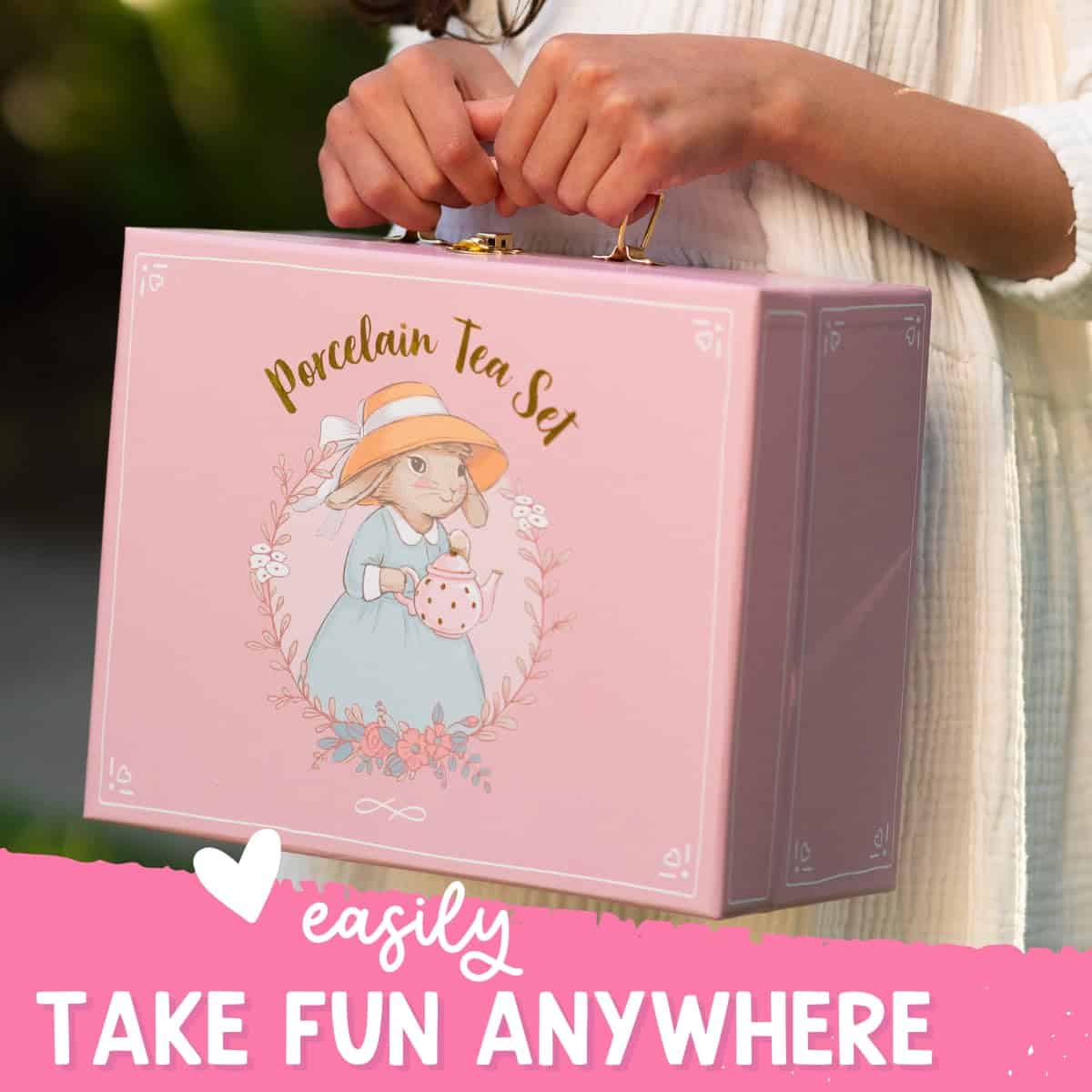 – El juego de tazas de té para niños incluye un elegante estuche de transporte (10.5 x 8.25 x 4.75 pulgadas)