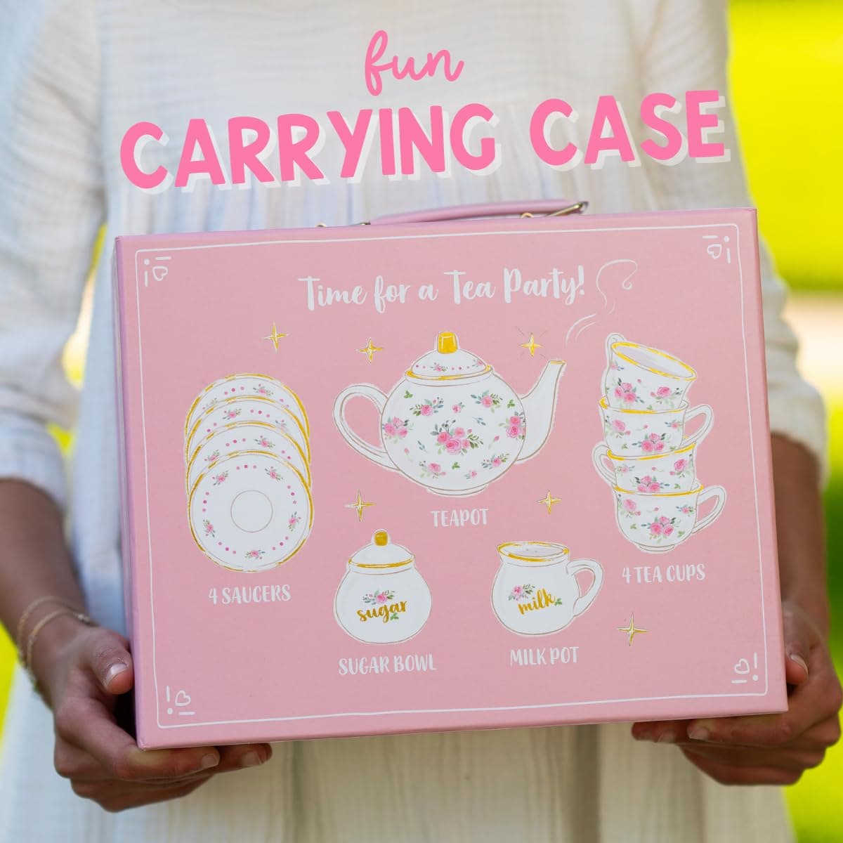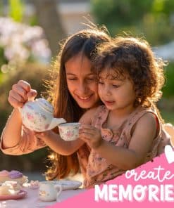 Este encantador juego de té para niñas porcelana floral trasciende el tiempo y las generaciones y cautiva a niñas de 3, 4, 5, 6, 7, 8, 9 y 10 años. Estos juegos de té para niñas no son solo regalos; son experiencias que evocan recuerdos apreciados en el que regala el regalo y cada momento de juego despierta asombro, fomenta la creatividad e enciende la imaginación.