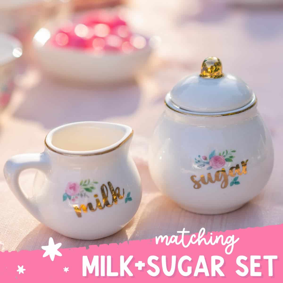– Juego de tetera completo para niñas: tetera (6 de la manija al pico), 4 tazas (1.75 ), 4 platos (4 ), azucarera, jarra de leche