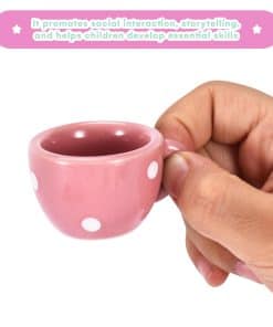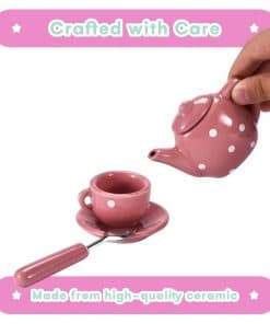 Juego de té de porcelana Jewelkeeper para niñas pequeñas, rosa con lunares, 13 piezas