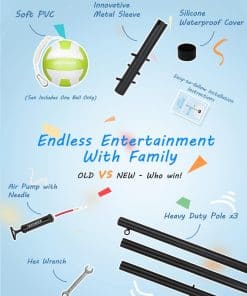 Juego de tetherball Trymaker para todas las edades: 3 postes que se conectan perfectamente. Protegiendo tu uso diario y sin necesidad de preocuparte por que se caiga. Difícil de desmontar una vez ensamblado, evitando que los niños lo desarmen. Seguro y confiable, con una altura total de 10.43 pies y un diámetro de 1.65».