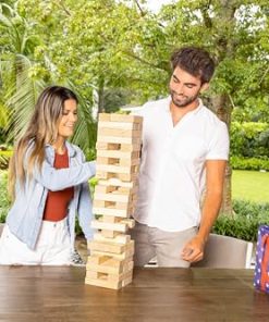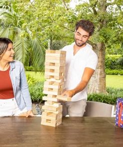 La Jumbo Torre de Equilibrio de Madera Stars & Stripes de YardCandy es un set de actividad al aire libre de lujo perfecto para la diversión en familia. Con 54 bloques de madera grande que miden aproximadamente 5 pulgadas cada uno, los adolescentes y adultos pueden pasar horas apilando cuidadosamente los bloques para crear una estructura imponente que alcanza más de 5 pies de altura. Lleva la emoción de un clásico set de bloques de madera al aire libre o al parque. ¡Prueba tus habilidades de equilibrio o turnos añadiendo bloques sin que todo se derrumbe! Cuando termine el tiempo de juego, el set se guarda convenientemente en una resistente bolsa de transporte con cremallera en diseño de Estrellas y Rayas con asa para un transporte fácil. Este juguete clásico al aire libre brinda diversión a la antigua bajo el sol. ¡Horas de entretenimiento están garantizadas!