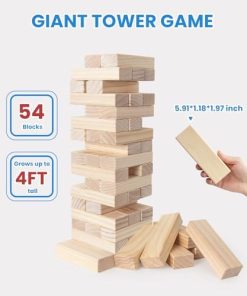 2. Juego Familiar Perfecto y Fiesta de Grupo Nuestro Juego de Torre Gigante es fácil para personas de todas las edades, incluidos niños, adultos, familias. Los padres pueden llevar la torre para divertirse en el patio trasero. Es la mejor actividad familiar que abarca la brecha generacional. Puede personalizar el set y reunir a sus amigos para jugar con él.