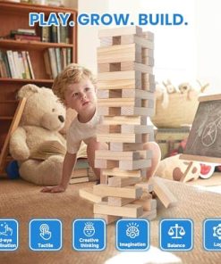 1. Calidad Superior en Pino y Seguro para Niños Los Bloques de Tumbar están hechos de pino de primera calidad seleccionado manualmente, que es NO tóxico, no se agrieta ni se parte y proporciona durabilidad duradera. Los bordes de las esquinas de los bloques están meticulosamente redondeados y extra suaves, lo que lo hace seguro para su familia. Asegura un tiempo de ocio divertido entre actividades familiares y fiestas con amigos.