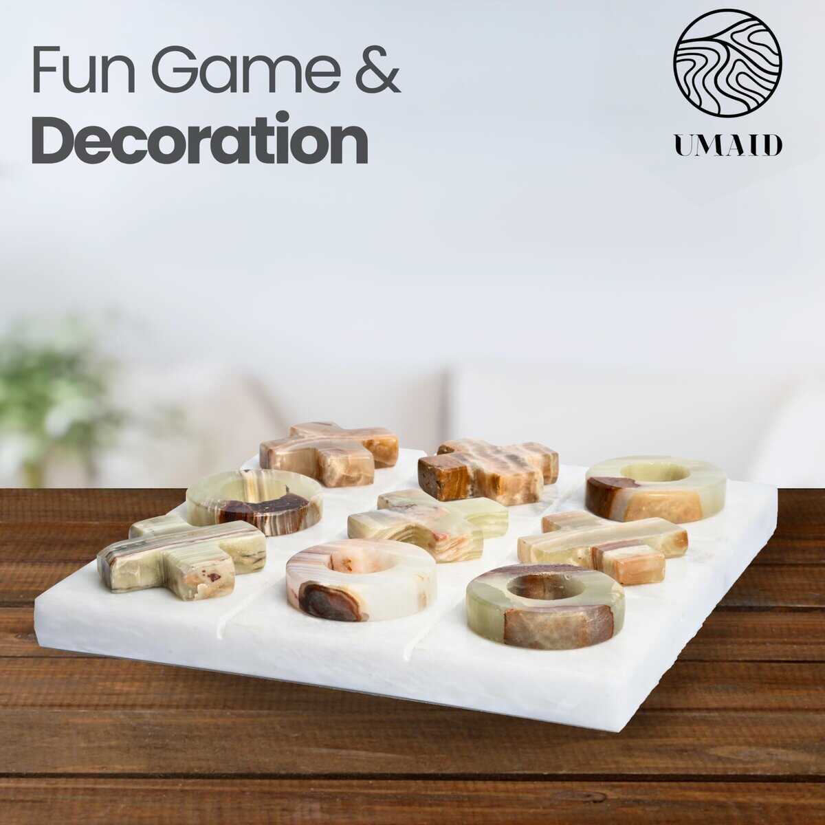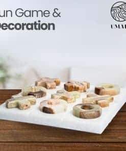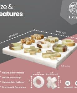 Eleve su decoración y experiencia de juego con el Juego de Tres en Línea de Mármol Blanco Bianco UMAID con Piezas de Ónix Verde. Abrace la belleza del mármol natural y lleve a casa una pieza de elegancia atemporal hoy mismo.