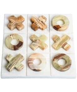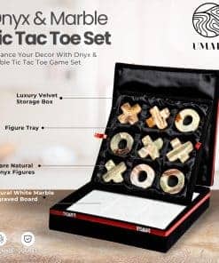 Ya sea colocado en una mesa de café, estante o escritorio, este juego de tres en línea de mármol mejora cualquier habitación con su presencia elegante. Sirve como un juego funcional adecuado para todas las edades al mismo tiempo que se convierte en un tema de conversación y un acento decorativo en interiores tanto modernos como tradicionales.