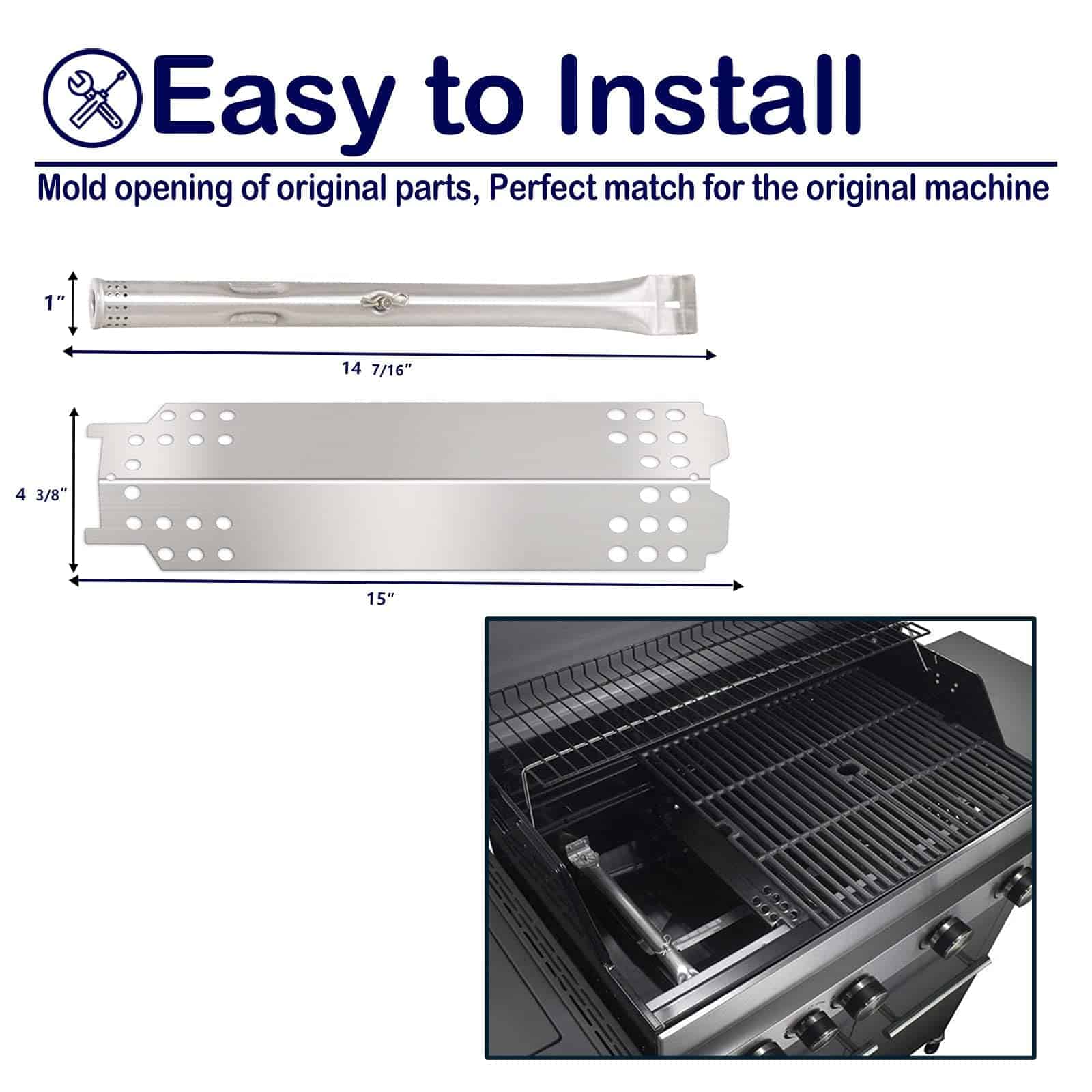 4 x Tubo quemador de acero inoxidable 14 7/16″ x 1″, Número de modelo original: g432-y700-w1 G466-2500-W1 G421-0500-W1; 4 x Placa de calor de acero inoxidable dimensiones: 15″ X 4 3/8″. Tent de calor para parrilla de gas charbroil 463436215. Modelo original G432-0096-W1. Se adapta a los modelos de parrilla Charbroil Classic de 4 quemadores 463436215 463439915 463436213 463436413 463436215 463436215 463436215 463436214. Se adapta a los modelos de parrilla Charbroil Classic de 4 quemadores 463439915 463432114 463436414 463436415 463439914 463462114 467300115 463434413 463436215 463439915. Se adapta a los modelos de parrilla Charbroil Thermos de 3 quemadores 461375519 461376719 461334813 461334814 461334915 461372517, piezas de repuesto para parrilla de gas Thermos modelo 461334813, piezas de parrilla charbroil 461334813. Tubo quemador de parrilla de gas con múltiples funciones, interior liso, asegura una combustión segura. Con el tiempo, las piezas de su parrilla se desgastarán y oxidarán, estas Placas de Calor para parrilla están bien diseñadas y construidas para durar, lo que las hace más resistentes a la corrosión para que no sea fácil oxidarse después de un uso prolongado, haciendo que su parrilla se vea como nueva nuevamente.