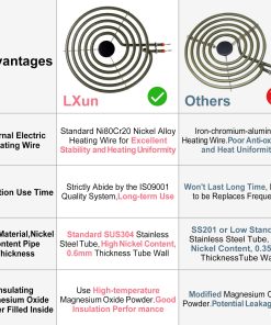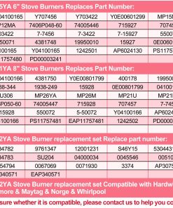 LXun MP22YA Juego de unidad de elemento de quemador eléctrico de rango, 4 Paquete Incluido 2 x MP15YA 6″ y 2 x MP21YA 8″ Reemplazo Condición 100% Nuevo Elemento de quemador de superficie de 6 pulgadas Reemplaza el número de parte: WPY04100165, Y707456, Y703422, Y0E00601299, MP15MA, MP12MA, 7406P048-60, 74005446, 715927, 707456, 703422, 7-7456, 7-3422, 7-15927, 550071, 5-50071, 4381748, 19950010, 15927, 0E00601299, 04100165, Y04100165, 1242501, AP6024130, PS11757480, EAP11757480, PD00003241. Elemento de quemador de superficie de 8 pulgadas Reemplaza el número de parte: WPY04100166, 4381750, Y0E00801799, 400178, 19950009, 1938-344, 1938-249, 15928, 0E00801799, 04100166, SU306, MP26YA, MP26M, MP21U, MP21MA, 7406P050-60, 74005447, 715928, 715928, 707457, 707457, 7-7457, 7-15928, 550072, 550072, 5-50072, Y04100166, AP6024131, PS11757481, EAP11757481, 1242502, PD00003012. Diseño: Las vueltas son cuántas veces la bobina da la vuelta en un círculo. Tiene un soporte en forma de «Y». Marcas Compatibles: Estos quemadores de cocina se adaptan a la mayoría de las gamas, EXCEPTO GE/Hotpoint. Se ajusta a los estándares OEM y/o excede los requisitos OEM probados. Paquete Incluido: Un total de 4 piezas: Dos quemadores grandes de 8″ 2100 vatios 230 v 5 vueltas (MP21YA) Y Dos quemadores pequeños de 6″ 1500 vatios 230v 4 vueltas (MP15YA) CONTÁCTENOS: Para cualquier consulta con respecto al producto o servicio, por favor contáctenos y haremos todo lo posible para resolver su problema dentro de las 24 horas. Gracias por su cooperación.