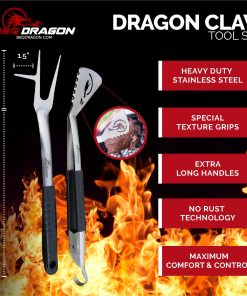 JUEGO DE HERRAMIENTAS DE BBQ TODO EN UNO – El set de herramientas de parrilla de BBQ Dragon combina los utensilios para barbacoa esenciales en solo dos herramientas versátiles. Simplifica tu experiencia de parrilla con el Dragon Claw y las Super Tongs, cada una diseñada para realizar múltiples funciones. Perfecto para entusiastas de la parrilla al aire libre, estas herramientas eliminan la necesidad de llevar una bolsa voluminosa de utensilios de parrilla en tu próximo viaje de campamento.
