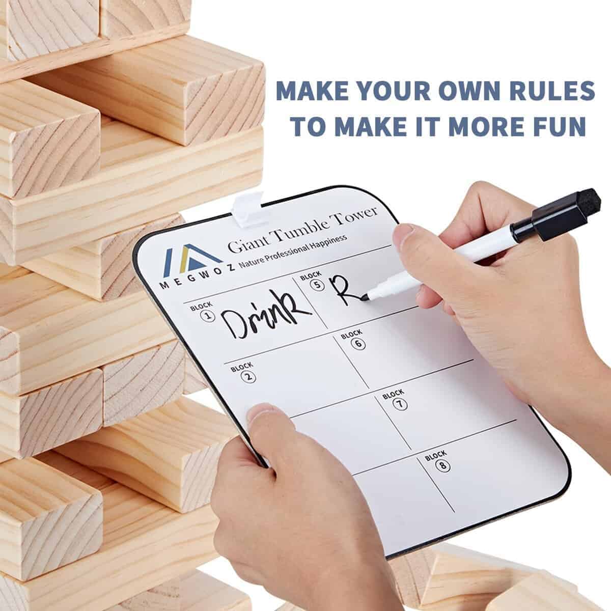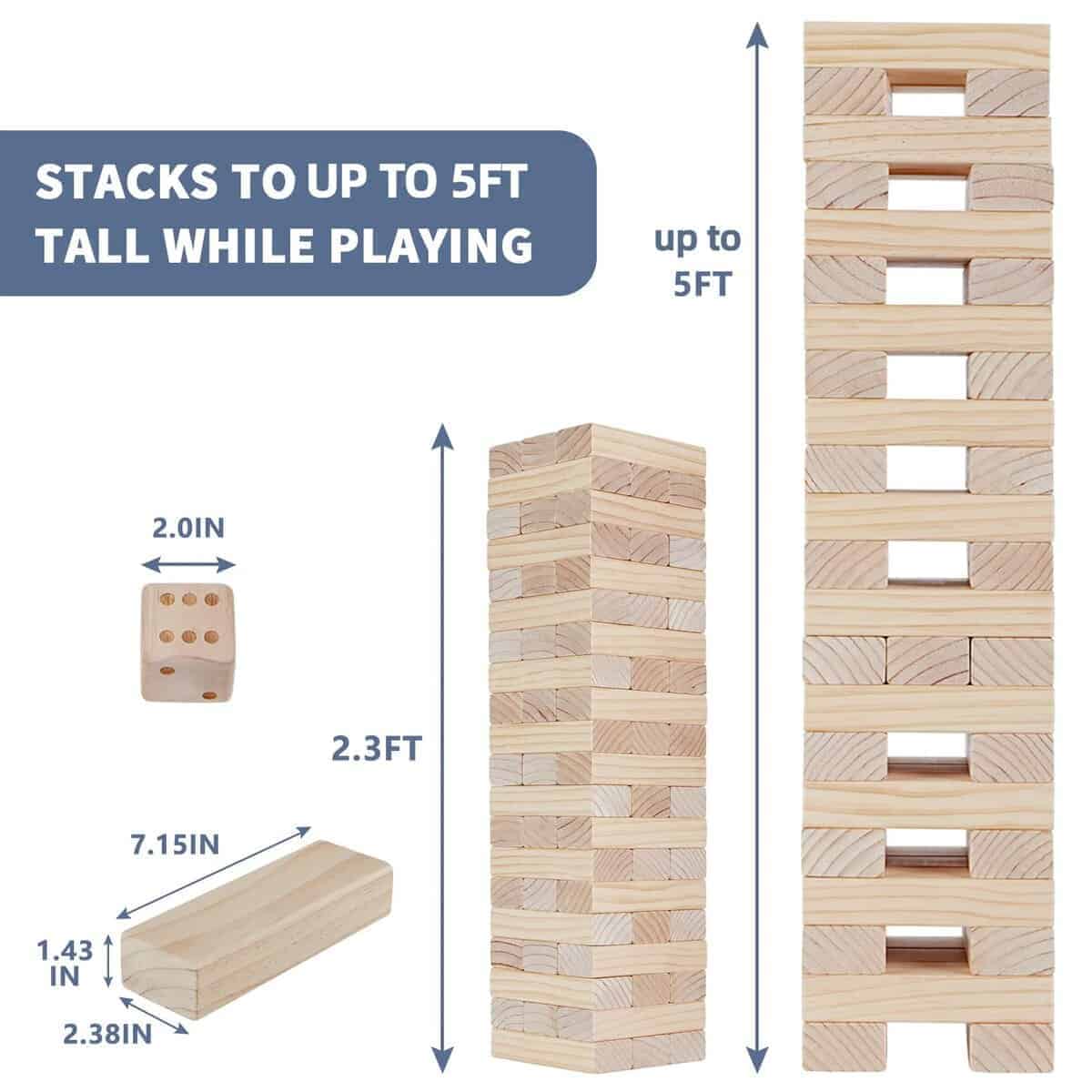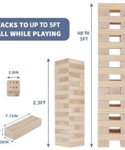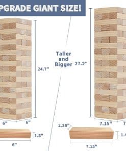 Juego de Torre Gigante Megwoz – 57 Piezas de Bloques para Interior/Exterior | Altura de Construcción de 2.3 a 5+ pies | Incluye Dado, Marcador y Bolso de Transporte – Perfecto para Fiestas, Campamentos, Juegos en el Patio Trasero