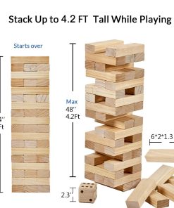 Nuestro Juego Gigante de Madera es fácil para niños mayores de 5 años, adolescentes, adultos y mayores, incluyendo niños mayores de 5 años, niños, adultos, familia. Los padres pueden tener madera para divertirse en el patio trasero. Es la mejor actividad familiar que abarca la brecha generacional.
