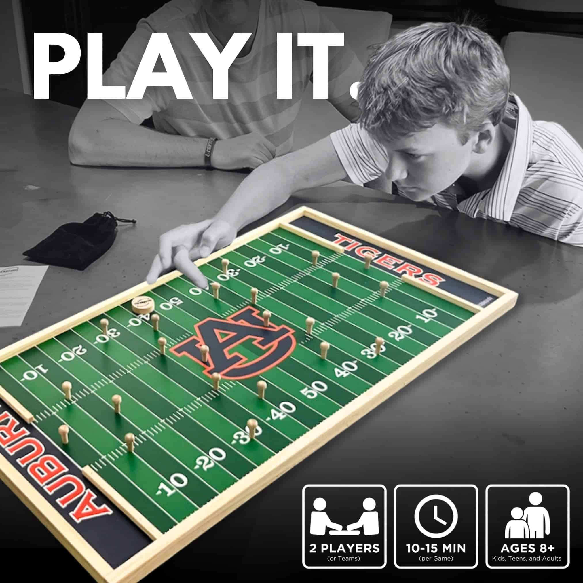 Flickboards es un juego innovador con temática deportiva que lleva la diversión y emoción de una fiesta en tailgating a la comodidad de tu sala de estar! Una versión moderna del clásico juego de fútbol de mesa, es una forma ideal de entretener a todos en reuniones familiares, fiestas, y tailgates. Lo que realmente distingue a FLICKBOARDS LLC es su uso de doble propósito como elegante decoración de pared para tu sala de estar, oficina, y cueva de fanáticos. Celebra y expresa tu espíritu de equipo – «Juegalo. Exhibelo» con Flickboards. Diseño Patentado y Marcas Registradas: Garantiza un producto exclusivamente elaborado, al tiempo que garantiza calidad premium y autenticidad. PATENTES: US10722781B1, USD837300S1. Producto de Doble Propósito: Combina perfectamente la jugabilidad atractiva y la elegante decoración de fanáticos, asegurando que tu Flickboard se use bien; ya sea jugando y/o exhibiéndolo durante años por venir. Amplia variedad de Flickboards para elegir: Varios colores y diseños, así como 30+ Equipos Universitarios Oficialmente Licenciados y contando! Acerca de Flickboards Uniendo a las Personas con Juego Inspirado en Deportes Flickboards une perfectamente los deportes y el juego con la decoración del hogar para generar conexiones y recuerdos duraderos. Nuestra misión es capacitar a personas de todas las edades y antecedentes para expresar su pasión por los deportes y sus equipos favoritos de una manera única e interactiva; reuniéndolos con juegos inspirados en deportes. Juegalo. Exhibelo. Filosofía Guiados por nuestra filosofía Juegalo. Exhibelo. , redefinimos los juegos creando productos que combinan perfectamente el entretenimiento con la decoración del hogar. Este enfoque de doble propósito garantiza que nuestros juegos permanezcan más visibles y prominentemente exhibidos, lo que permite más conexiones compartidas e inspira más juegos espontáneos. Advertencia: Este producto puede exponerte a productos químicos que son conocidos en el Estado de California por causar cáncer y defectos de nacimiento u otros daños reproductivos.