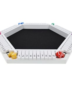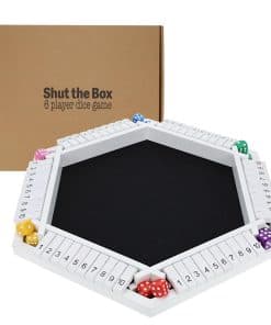 ¡Presentamos el juego definitivo de azar y estrategia – el juego Shut the Box para 6 jugadores! Este clásico juego de mesa es perfecto para noches familiares, reuniones sociales y juego competitivo. El objetivo es simple pero adictivo: tira los dados y cierra sistemáticamente las fichas numeradas en el tablero de juego de madera, tratando de alcanzar la puntuación más baja o cerrar la caja antes que tus oponentes. Con 6 jugadores, el juego se convierte en una emocionante carrera para ver quién puede idear estrategias y rodar hasta la victoria primero. El juego incluye un tablero de juego de madera resistente con 6 lados y 10 fichas numeradas (1-10) para cada jugador, 12 dados estándar de seis caras en diferentes colores, y instrucciones detalladas para el juego de 6 jugadores. Ya seas un entusiasta experimentado de Shut the Box o nuevo en el juego, esta versión para 6 jugadores promete horas de diversión atractiva y desafiante para toda la familia. Desafía a tus amigos, familiares o colegas y descubre quién tiene las habilidades para «cerrar la caja» y emerger victorioso!