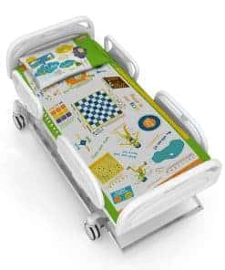 Las sábanas de cama incluyen más de 65 juegos interactivos divertidos, afirmaciones positivas, colores brillantes, cinco idiomas extranjeros diferentes, tableros de juego de gran tamaño, juegos de memoria, lanzamiento inteligente, damas, ajedrez, tres en raya, juegos de matemáticas, juegos de gramática, juegos de buscar palabras, juegos de ciencias divertidos, juegos de ejercicios, juegos de geografía, formas divertidas ¡y mucho más! También incluye piezas de juegos imprimibles de Playtime y muchos de los juegos dan hacia el interior para que los niños puedan sentarse y jugar. ¡Terapia de garabateo: juegos interactivos divertidos para jugar, juegos divertidos para garabatear, e imágenes divertidas para colorear. Y cuando estés listo, ¡las crayolas y marcadores lavables se lavan por completo! (¡Sin dejar marca en nada más en el lavado tampoco!) Dejando las sábanas de cama frescas y limpias para que los niños disfruten jugando, garabateando y coloreando una y otra vez! ¡Participa: involucra a los niños a través de actividades para ayudarles a aprender, crecer y expresarse en un entorno desconocido. Comodidad: ofrece alivio físico, mental o emocional para ayudar a aliviar los sentimientos de angustia y ansiedad. Normalización: proporciona actividades que los niños disfrutan en su vida cotidiana para ayudar a que una cama desconocida y aterradora se sienta segura y divertida. Apoyo emocional: proporciona un outlet para las emociones de los niños para ayudar a aliviar el miedo y la ansiedad en torno a tratamientos, factores de estrés y pena. Esterilización y lavabilidad: las sábanas de cama de terapia de juego fueron probadas bajo las siguientes pautas de TSRA. Temperaturas de agua altas de más de 160-190F, acción mecánica, detergentes, peróxido de hidrógeno, nivel de pH adecuado, suavizantes, temperaturas del pecho de planchado de al menos 300 grados, temperaturas de secado de 225 grados.