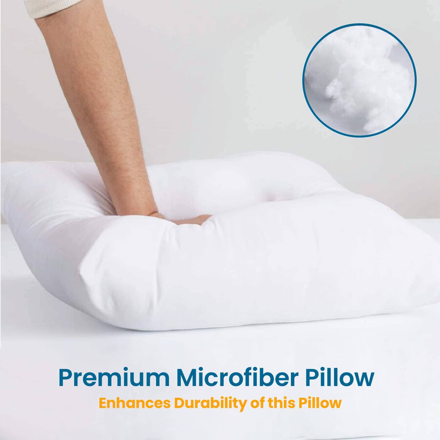 1. Almohadas con material Premium: Almohadas rellenas con un alternativo al plumón de microfibra Premium al 100% que brinda suavidad y alta resistencia con durabilidad.