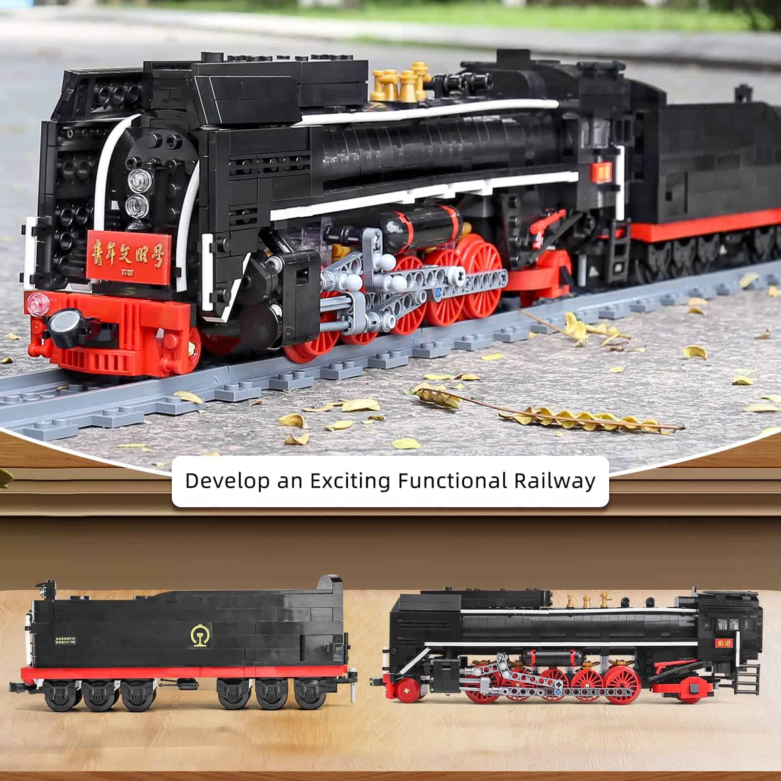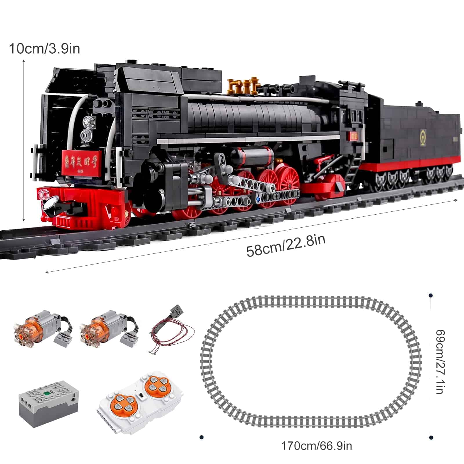 1. Tren de juguete divertido para niños: El juego de juguetes de tren de locomotora de vapor incluye la batería recargable, motores, control remoto, kits de luces led y vías. El control remoto requiere 2 pilas AAA, no incluidas. Tiene alrededor de 1552 piezas de bloques de construcción. Este juguete de construcción no solo disfruta de la diversión del ensamblaje, sino que también puede controlar el tren de forma remota después de ensamblar, lo cual es muy interesante para los niños.