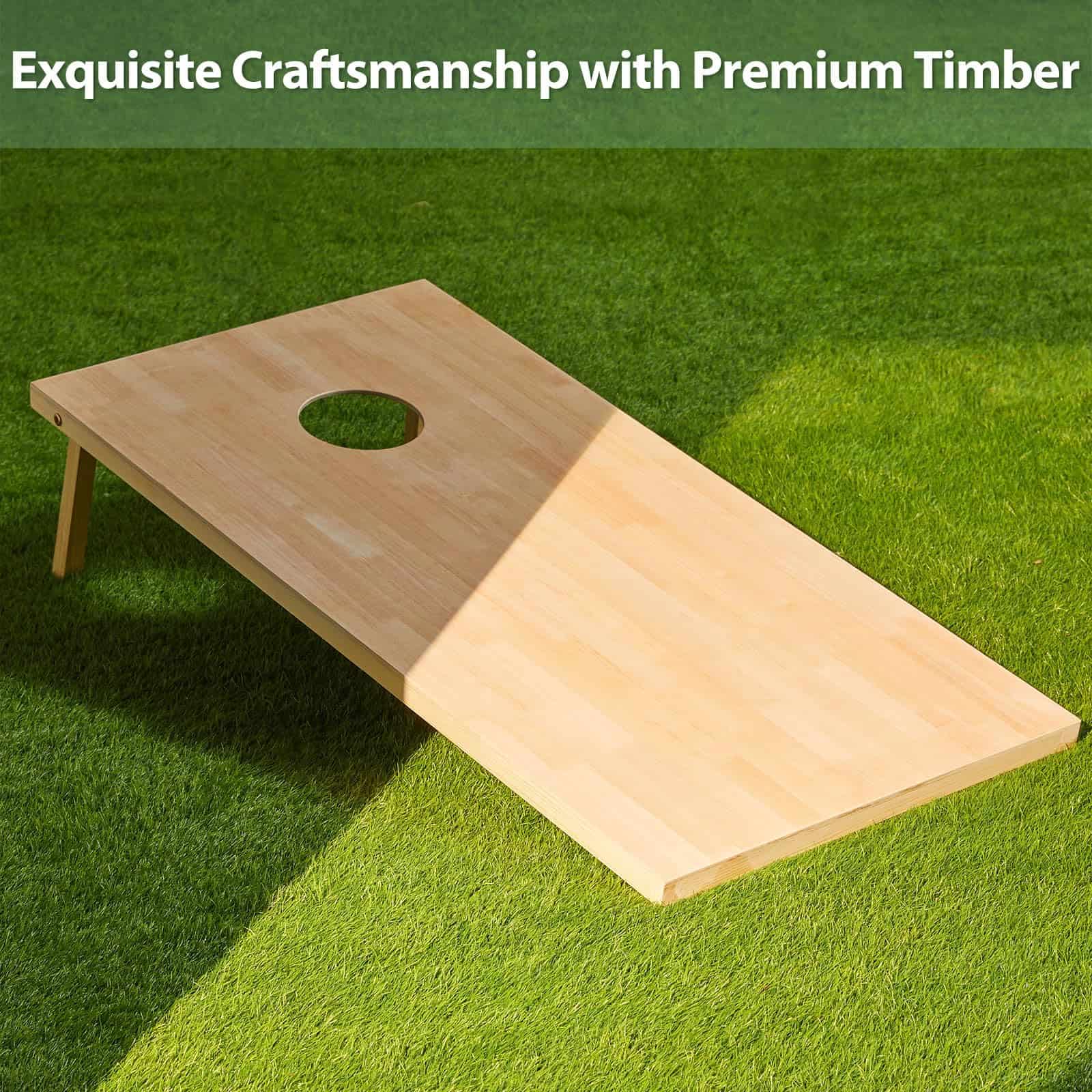 1. Madera sólida de alta calidad: El juego de corn hole está hecho de madera sólida y es duradero. El resistente juego de tablero de cornhole de madera maciza puede soportar años de uso sin deformaciones ni daños. Las bolsas de frijoles están hechas de tela resistente al desgarro y no se romperán incluso con un uso frecuente.