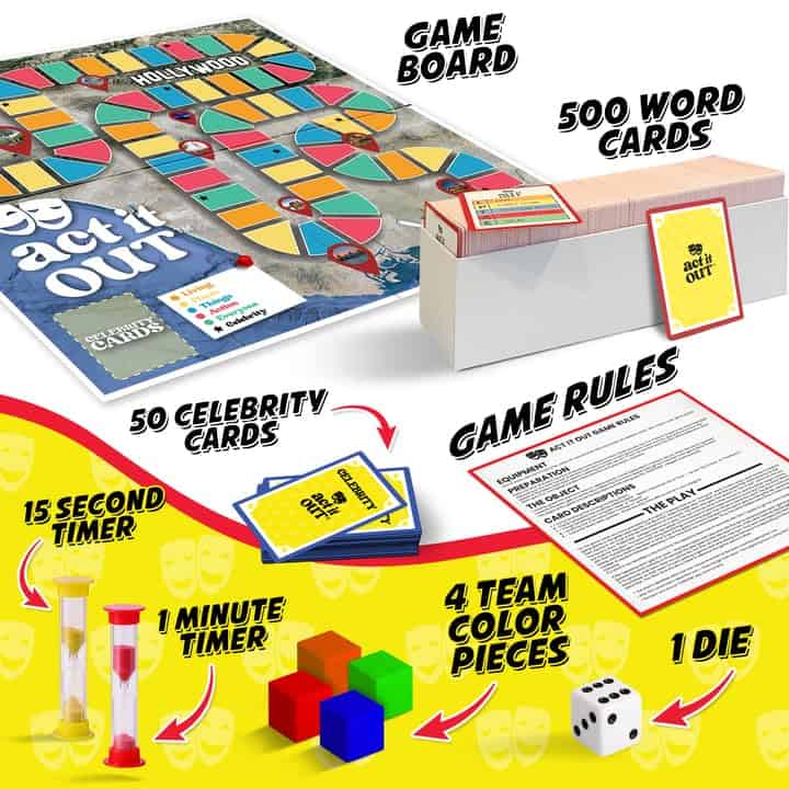 Board Games for Family Night Adults & Kids – Elevate Game Night For All Ages 6 & Up Best For Groups And Get Togethers This Fun Crazy Charades Style Game Will Have You Laughing Till Your Cheeks Hurt