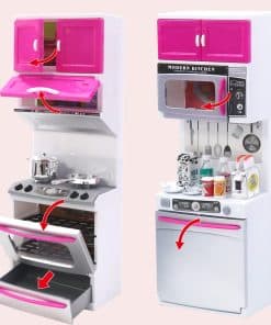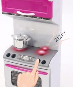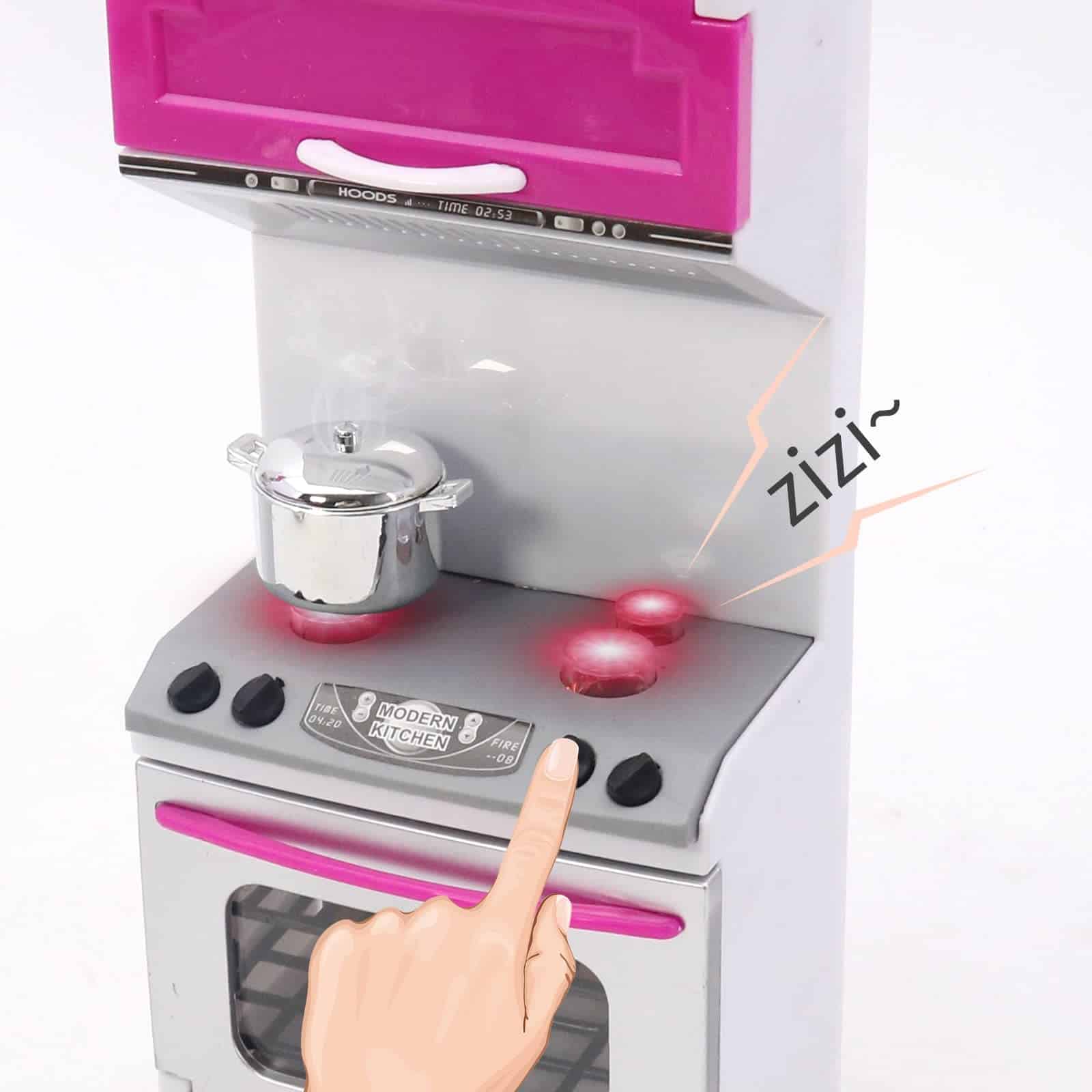 2. ESTUFA/MICROONDAS CON SONIDO Y LUZ: Los electrodomésticos como el microondas o la estufa se iluminarán e incluso emitirán sonidos realistas. Requiere 2 pilas «AAA» (no incluidas).