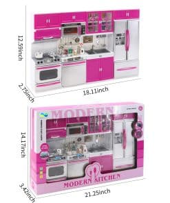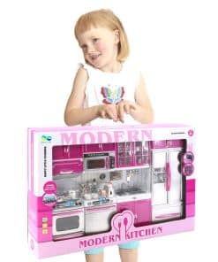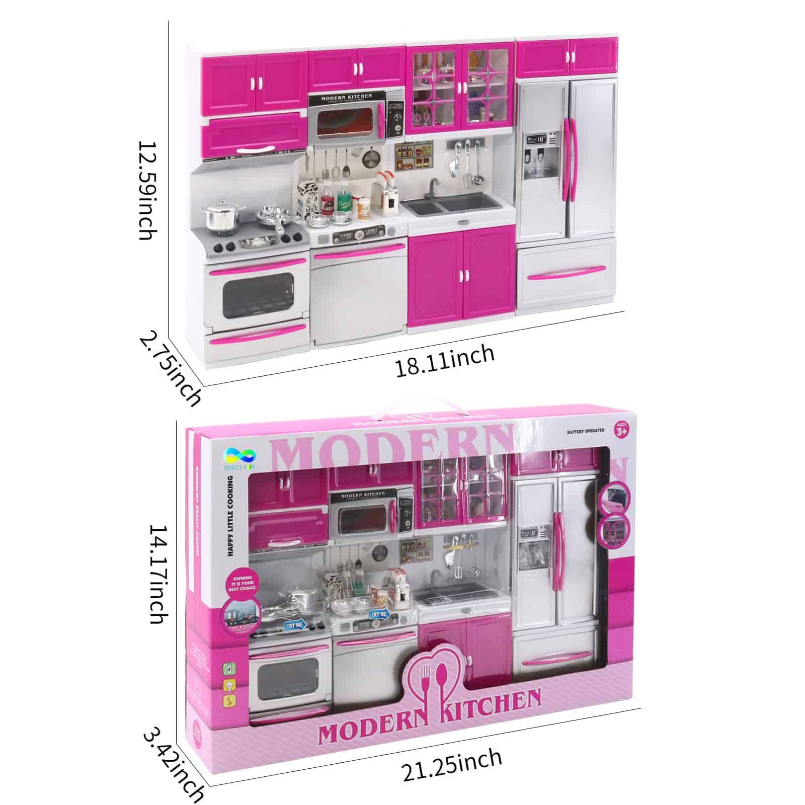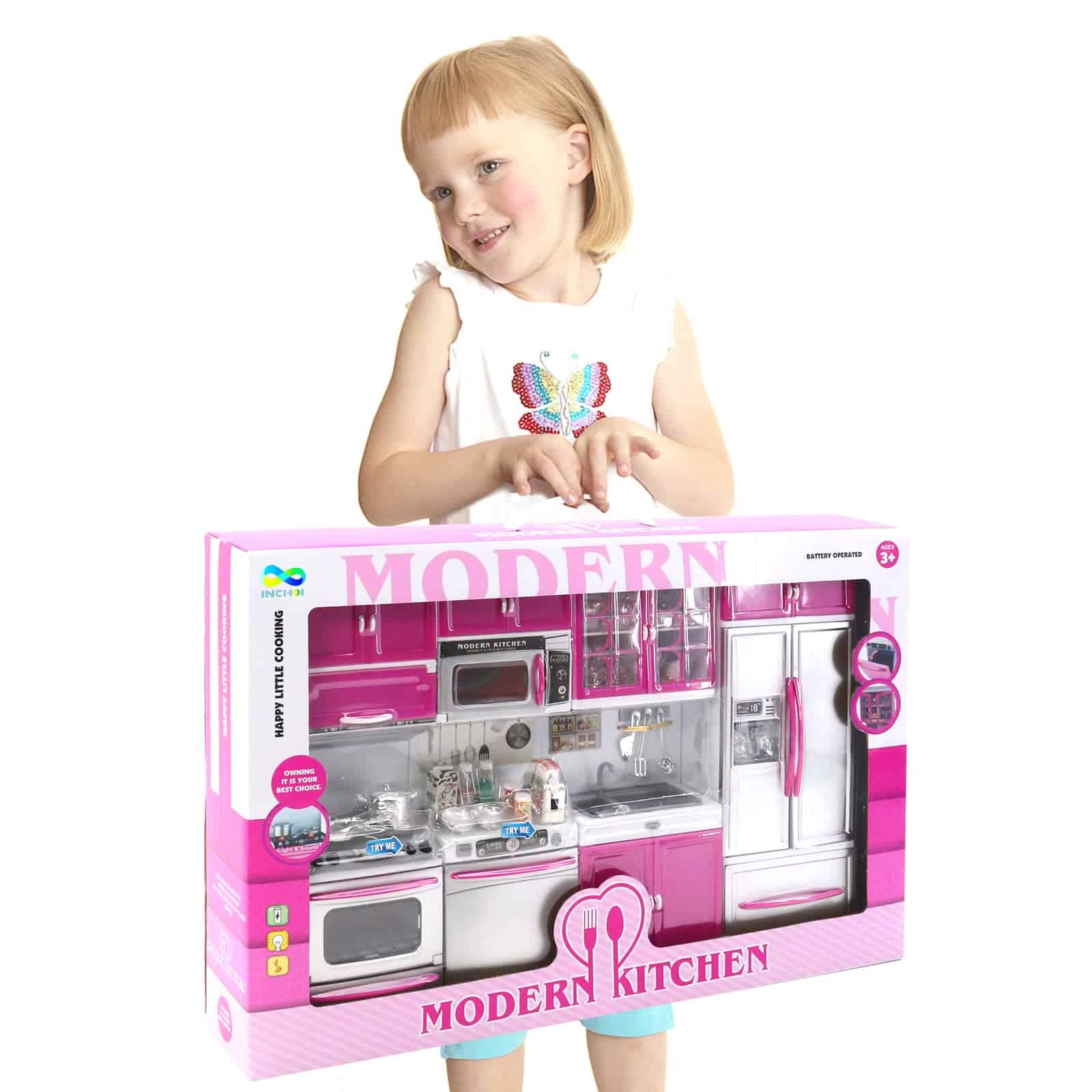 1. JUEGO DE COCINA MODERNA DE LUJO A BATERÍA INCHOI: Permite a tu hijo dominar este conjunto de cocina realista y completo con estufa, horno, fregadero y refrigerador. La mayoría de las puertas y armarios son accesibles. Simplemente abre los armarios y guarda tus platos o abre la puerta del frigorífico y guarda tus bebidas en su interior.