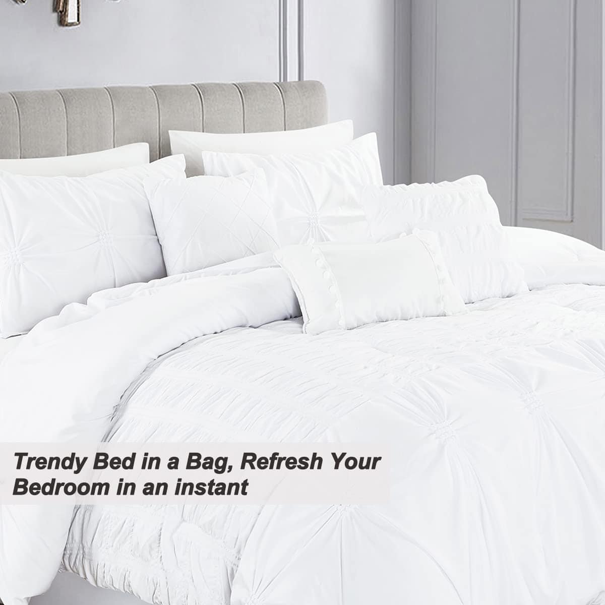La Serie de Juegos de Edredón MERRY HOME tiene todo lo que necesitas para completar una transformación en la decoración de tu dormitorio. Los patrones iluminarán instantáneamente tu cama con su rica y detallada textura. Viene con una falda de cama a juego y 3 almohadas a juego, el set de edredón complementará tu dormitorio con un toque de sofisticación. La capa exterior de nuestro set de edredón de 7 piezas está hecha de microfibra cepillada suave premium para brindarte una comodidad similar a la seda. Utilizamos nuestros materiales amigables con la piel especialmente procesados para ofrecerte un producto sin pelusa y transpirable. Relleno con nuestra excelente alternativa al plumón en el medio, el set de edredón Merry Home te mantendrá cálido y acogedor con estilo. Los patrones están cosidos firmemente en la capa exterior con hilo de Ultra Strength para resistir muchos ciclos de lavado a máquina. Lavar a máquina en agua fría, ciclo suave, y por separado. Secar a baja temperatura. NO usar lejía. NO planchar. La falda de cama no se puede lavar jamás. Utilizamos un paquete al vacío para proteger el producto del polvo, la humedad, etc., en el envío o almacenamiento. Puede dejar algunas arrugas en el producto. Para lograr la máxima esponjosidad, seca el producto en secadora con calor bajo durante 30 minutos y disfruta inmediatamente de la experiencia MERRY HOME. El set de edredón incluye 1 edredón tamaño California King (90″x104″), 2 fundas de almohada (20″x36″), 1 falda de cama (72″x84″+14″), 2 cojines (16″x16″), 1 cojín rectangular (12″x18″)