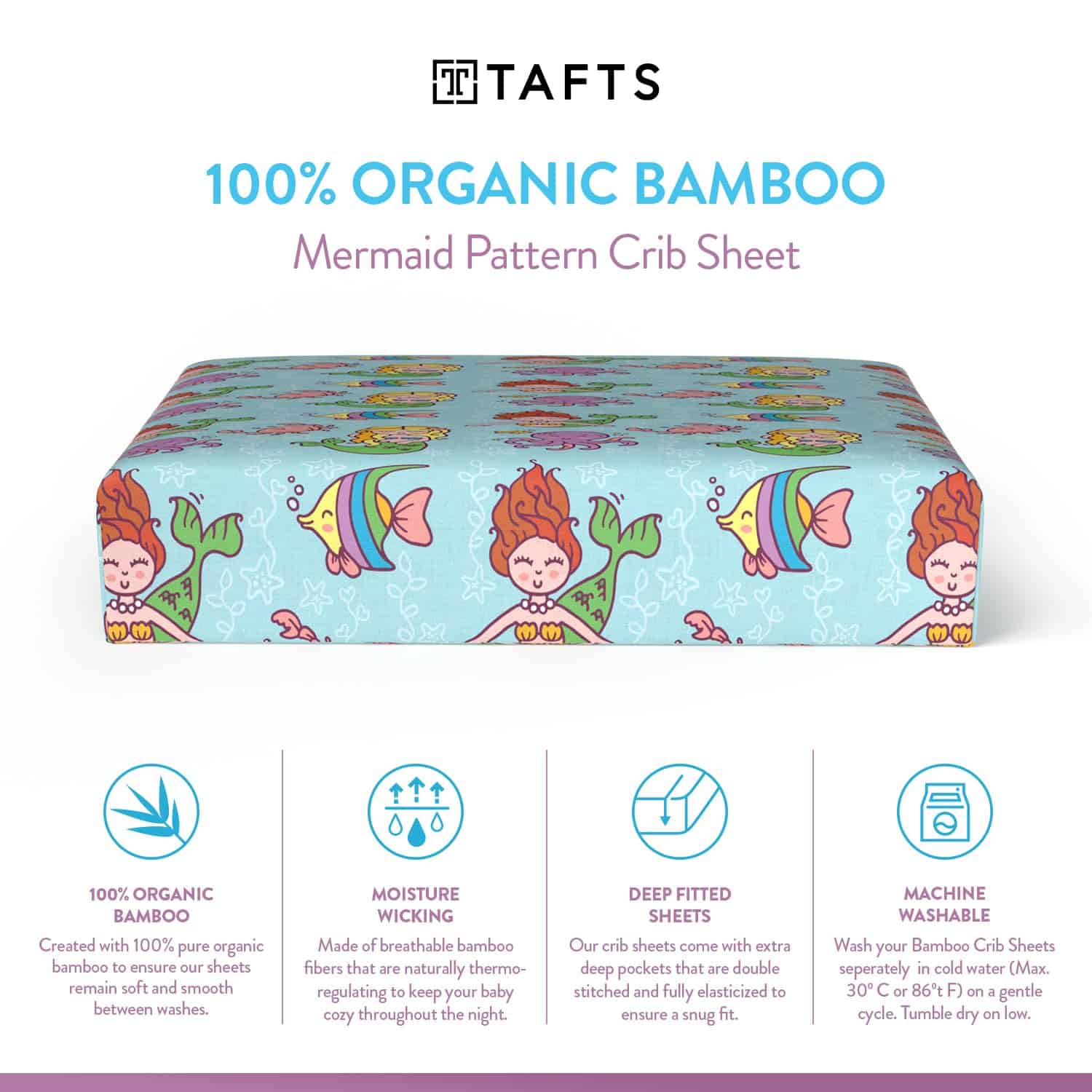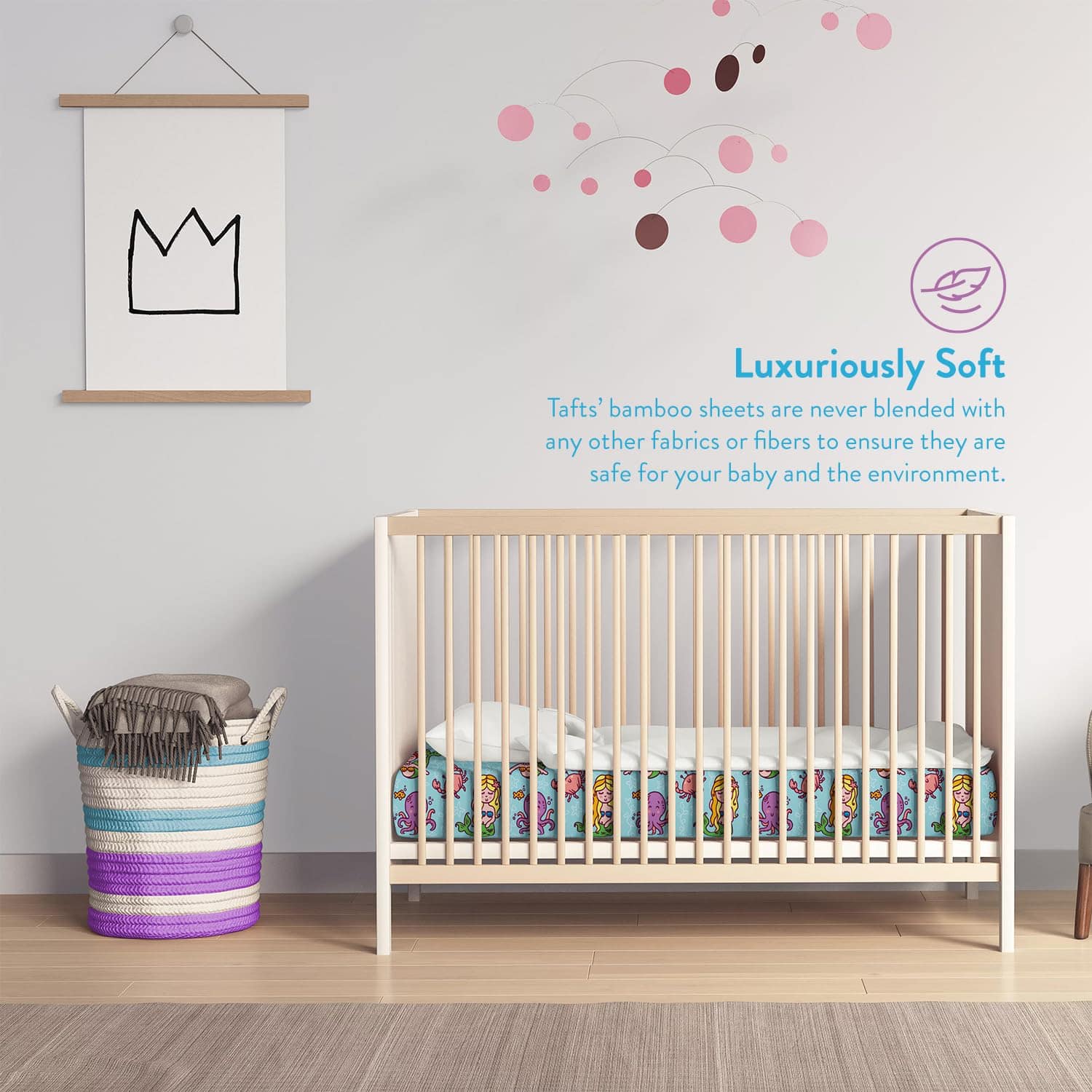 JUEGOS DE SÁBANAS AJUSTABLES TAFTS – Paquete de 2 – 100% Viscosa – Importado – Niñas, Niños y Unisex – Bolsillo Profundo de 8 Pulgadas, – Colchón Estándar para Cuna y Niños Pequeños – Refrigerantes – Suaves – Elástico 360 – Calidad de por Vida – 28 pulgadas x 52 pulgadas