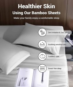 Las sábanas Shilucheng de 4 piezas para California King son una opción perfecta para aquellos que buscan un descanso tranquilo en la cama. Estas sábanas están fabricadas con una mezcla de 60% de rayón derivado de bambú y 40% de fibra de poliéster, lo que las hace suaves como la seda y fuertes como el algodón. El tejido único de sarga asegura una sensación fresca al tacto, ideal para los durmientes calurosos.