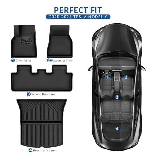 1. Ajuste a medida: Compatible con Tesla Model Y 2024-2020 (SOLO apto para 5 asientos); Experimenta mejoras en peso ligero y construcción de tres capas, junto con tecnología avanzada de precisión láser, los tapetes OEDRO están diseñados para proporcionar una cobertura de contorno precisa con funcionalidad fácil de usar.