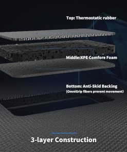 2. Material XPE- Diseño de tres capas: La construcción única de múltiples capas logra marcas de pisadas mínimas al tiempo que aumenta la belleza, durabilidad y practicidad; La capa superior de TPE resiste derrames y manchas, la capa intermedia XPR proporciona amortiguación y absorción de impactos, y el fondo de moldeo por goteo ofrece un agarre firme.