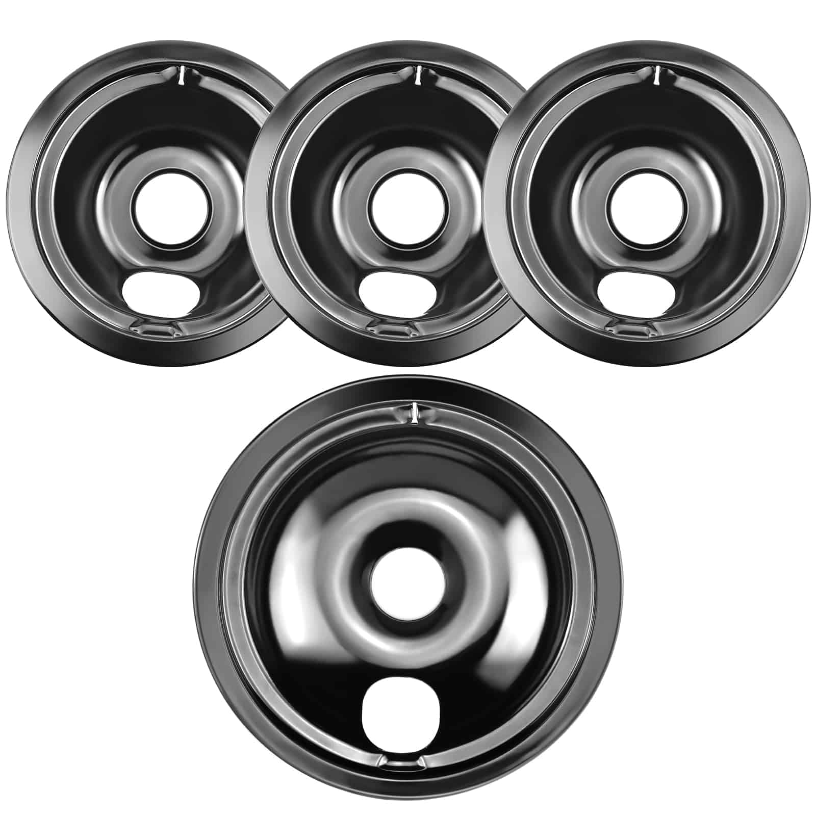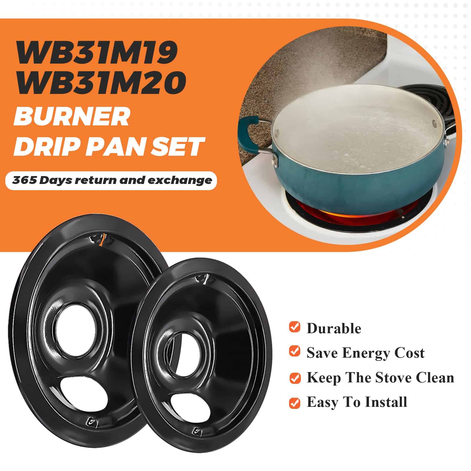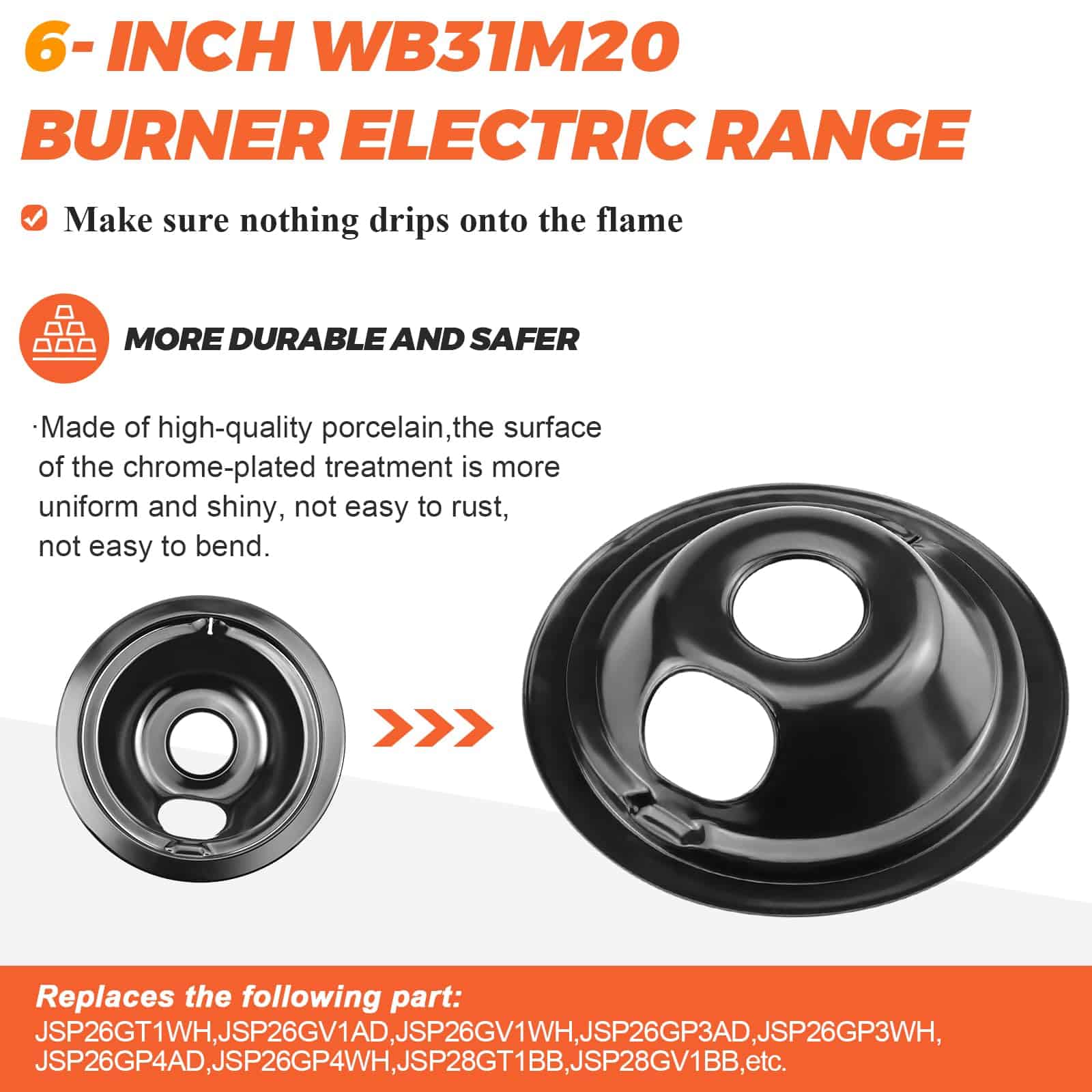 DESCRIPCIÓN DEL PRODUCTO: El tazón de 8 pulgadas mide 9.75 pulgadas de diámetro y el tazón de 6 pulgadas mide 7 5/8 pulgadas de diámetro. Color negro de porcelana. ¡Pulir cuidadosamente cada detalle y esforzarse por brindar a cada cliente un mejor uso y disfrute! INCLUYE: 1 Tazón de Goteo para Quemador WB31M19 3 Tazones de Goteo para Quemador WB31M20 CONSEJOS DE INSTALACIÓN: El tazón de goteo WB31M19 y WB31M20 recoge derrames de utensilios de cocina en el quemador de la superficie. Espere hasta que la superficie esté fría al tacto antes de instalar esta parte. Cualquiera puede completar esta reparación. No se requieren herramientas. SOLUCIONA LOS SIGUIENTES SÍNTOMAS: Evita que los utensilios de cocina se balanceen en la estufa. Evita el derrame de utensilios de cocina que manchen el quemador. FUNCIONA CON LA MAYORÍA DE MARCAS: Repuesto para estufas Kenmore GE Hotpoint. COMPATIBLE CON LOS SIGUIENTES NÚMEROS DE MODELO: GE: JHP63GN1, JHP63GN2, JHP63GN3AD, JHP63GN3WH, JHP63GN4AD, JHP63GN4WH, JHP63GN5AD, JHP63GN5WH, JSP26BW1AD, JSP26BW1WH, JSP26GP2AD, JSP26GP2WH, JSP26GT1AD, JSP26GT1WH, JSP26GV1AD, JSP26GV1WH, JSP26GP3AD, JSP26GP3WH, etc. Hotpoint: RB755GT1AD, RB755GT1WH, RB755GT2AD, RB755GT2WH, RB755GT3AD, RB755GT3WH, RB755GT4AD, RB755GT4WH, RB755GN1, RB755GN2, RB755GN3, RB755GN4AD, RB755GN4WH, RB755GN5AD, RB755GN5WH, RB755GN6AD, RB755GN6WH, etc. TENGA EN CUENTA: El nombre de la marca o la designación del modelo de este producto se realiza únicamente con el propósito de demostrar compatibilidad. ¡Gracias!