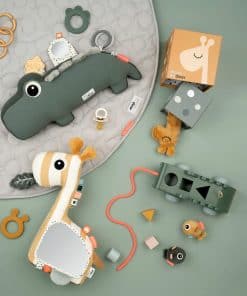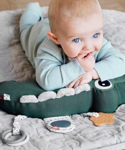 1. Diseño Sensorialmente Rico: Equipado con un mordedor de mostaza y anillos para calmar las encías irritadas, texturas táctiles, sonidos de arruga, y un vientre de cocodrilo que se agita para estimular los sentidos de tu bebé.