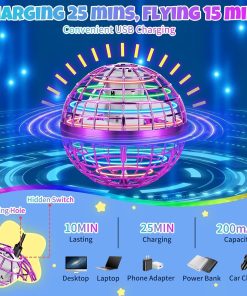 USB Rechargeable & Portable Design This orb ball flying is not only entertaining but also eco-friendly with its USB rechargeable feature. Simply connect it to any USB device like a mobile power bank or laptop, and within a quick 25-minute charge, you’ll have a full 6-8 minutes of thrilling flight time. Its compact and portable design ensures that you can take it with you wherever you go without it taking up much space. Whether you’re at the park or on a trip, it is always ready for action.