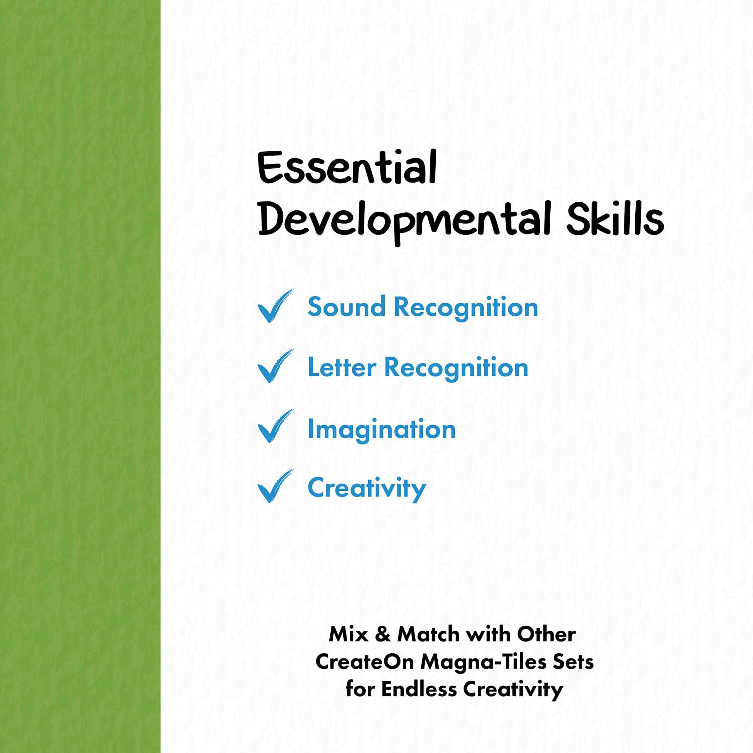 1. ¡Magna-Tiles de Sesame Street para niños: CreateOn y Magna-Tiles se han unido para llevar el barrio favorito de todos directamente a las manos de tu hijo! Niños de 3 años en adelante pueden explorar Sesame Street de una manera táctil con Elmo, Big Bird, Oscar the Grouch, Grover, Cookie Monster y más! 2. Set de Magna-Tiles de 21 piezas: Compatible con todos los sets de Magna-Tiles, este set incluye 1 baldosa hexagonal, doce baldosas cuadradas de 3 pulgadas, 6 baldosas de triángulo equilátero, una baldosa rectangular de 6 pulgadas y 1 chasis. ¡Tu hijo puede construir el camión de basura de Oscar por un lado y crear los personajes y su hogar por el otro lado! 3. Fomentando la imaginación y habilidades constructivas: Las baldosas magnéticas de CreateOn ayudan a enseñar habilidades STEAM, como geometría y conciencia espacial, y fomentan la identificación de formas y habilidades para resolver problemas a través del juego. Nuestras piezas de baldosas de doble cara están terminadas con tecnología SuperColor para una experiencia vívida. 4. Mezcla de baldosas para diversión creativa: Nuestros juguetes magnéticos son solo el principio de la experiencia práctica de juego de tu hijo. ¿Quién dice que Big Bird no puede explorar el espacio exterior, visitar un castillo real o unirse a los garabatos caseros de tu hijo ¡Deja que tu hijo explore la imaginación con nuestra colección de juguetes interactivos! 5. Educación en el hogar a través del juego: Originalmente diseñadas para aulas preescolares, nuestras baldosas magnéticas permiten a los niños experimentar el aprendizaje a través de la creatividad y la construcción en casa. Todos los productos de CreateOn están desarrollados y ensamblados en los Estados Unidos, ¡así que tu compra apoya a las familias estadounidenses en crecimiento.