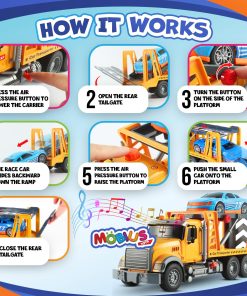 1. EMOCIONANTE JUGUETE DE CAMIÓN DE REMOLQUE CON COCHE DE CARRERAS: Este set de camión de remolque a fricción con coche de carreras es perfecto para niños de 3 a 9 años. El set incluye un realista juguete de camión de remolque con 11 accesorios geniales, permitiendo a los niños crear emocionantes escenarios de rescate y carrera para horas de juego imaginativo.