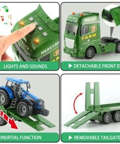 Juguete de cargadora 3 en 1 de Wenbeier. ¡Ideal para niños jugando a juegos de rescate en la granja! El tractor puede moverse sin pilas ni electricidad. Basta con empujarlo un poco hacia adelante y se moverá por sí mismo. Las ruedas de goma corren suavemente sobre cualquier superficie plana. Los botones en el techo pueden cambiar entre 4 efectos de sonido y luz realistas. ¡Seguro para los niños! Tenga la seguridad, nuestro juguete cumple con los estándares de juguetes de EE. UU. y está hecho de plástico ABS de alta calidad. Es un regalo perfecto de cumpleaños y Navidad para niños de 3 años en adelante.