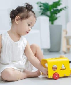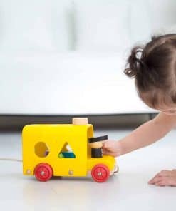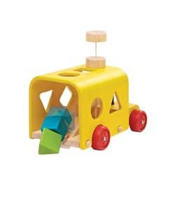 El Autobús de Clasificación de Formas de madera de PlanToys es un clasificador de formas y también un juguete de arrastre. Sus colores brillantes y su elegante conductor de autobús animan a los niños a colocar las 3 formas coloridas en los agujeros de forma correspondientes en cada lado del autobús. Para sacar las formas, el niño simplemente tira hacia arriba de la pestaña de madera en la parte superior del autobús. Esto levanta una bandeja en el autobús y las formas se deslizan hacia afuera. Bellamente elaborado con bordes redondeados para seguridad. El cordón de tracción mide 24″ de largo. El autobús está dimensionado para manos pequeñas y mide 5.0 x 7.9 x 5.3 pulgadas. El juguete de arrastre de Autobús de Clasificación ayuda a los niños a desarrollar habilidades motoras finas y gruesas, reconocimiento de colores y formas, y destreza. En PlanToys, nuestra misión es proporcionar a los niños juguetes sostenibles y respetuosos con el medio ambiente que fomenten el aprendizaje temprano, enciendan la imaginación y estimulen los sentidos. Nuestros diseñadores de juguetes crean productos divertidos que fomentan todos los aspectos del desarrollo de un niño, incluidas las habilidades motoras gruesas y finas, habilidades lingüísticas, desarrollo social e interacción, y mucho más. Todos los productos de PlanToys están hechos de árboles de madera de caucho que ya no producen látex. La madera de caucho utilizada no contiene productos químicos y se seca en horno para asegurarse de que siga siendo libre de químicos. Nuestros juguetes se ensamblan utilizando un pegamento certificado E-Zero libre de formaldehído. Luego se utilizan pigmentos orgánicos y tintes a base de agua para agregar color. Un juguete de PlanToys es seguro para tu hijo y garantiza un entorno sostenible para su futuro. Apto para niños de 12 meses en adelante.