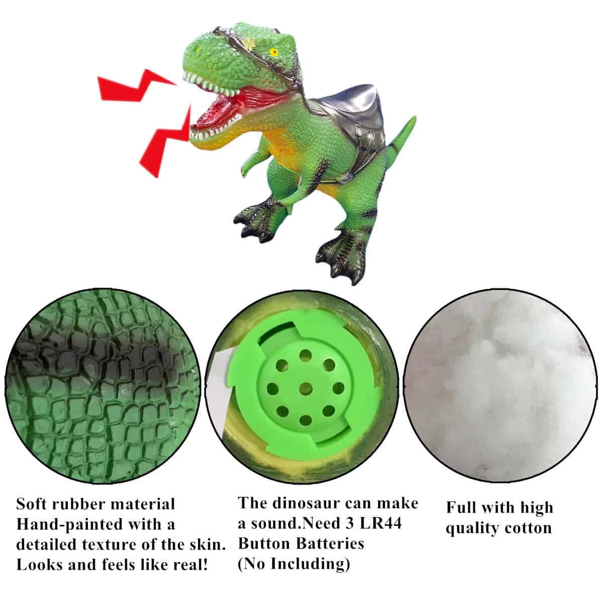 5. SONIDO: cuando presionas el botón, el dinosaurio puede emitir un sonido.