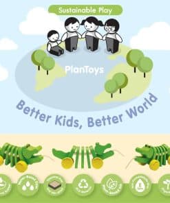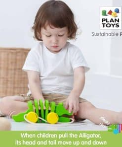 Nuestro alegre Cocodrilo Bailarín verde y amarillo seguramente provocará un ataque de risa. Este clásico juguete de tirar de madera emite un suave sonido click-clack al ser tirado y deleita a niños pequeños y en edad preescolar. La cuerda de 24 pulgadas de largo está insertada de forma segura. Hecho de madera de caucho libre de productos químicos y tintes y pigmentos no tóxicos, nuestro caimán seguramente ayudará a los niños con sus habilidades motoras gruesas y fomentará su imaginación. Con medidas de 3.9 x 9.7 x 3.7 pulgadas, el juguete de tirar de madera Cocodrilo Bailarín combina el aprendizaje con la diversión. En PlanToys, nuestra misión es proporcionar a los niños juguetes sostenibles y respetuosos con el medio ambiente que fomenten el aprendizaje temprano, estimulen la imaginación y estimulen los sentidos. Nuestros diseñadores de juguetes crean productos divertidos que fomentan todos los aspectos del desarrollo de un niño, incluidas las habilidades motoras gruesas y finas, las habilidades lingüísticas, el desarrollo social e interactivo, y mucho más. Todos los productos de PlanToys están hechos a partir de árboles de madera de caucho que ya no producen látex. La madera de caucho utilizada está libre de productos químicos y se seca al horno para asegurar que permanezca libre de químicos. Nuestros juguetes se ensamblan utilizando un pegamento certificado E-Zero libre de formaldehído. Luego se utilizan pigmentos orgánicos y colorantes a base de agua para añadir color. Un juguete de PlanToys es seguro para tu hijo y asegura un ambiente sostenible para su futuro. Adecuado para niños de 12 meses en adelante.