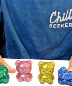 3. Juguete Súper Lindo, Suave y Fresco: Colores Neón Variados con Brillo en el Interior (Verde, Dorado, Rosa y Azul). Lavable y Duradero. No Comestible, no es un Producto Alimenticio. Juguete de Oso de Goma para Niños, Niñas y Adultos.