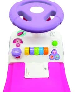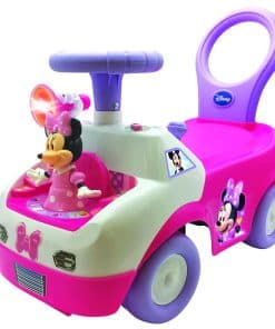 Escucha a Minnie reproducir su música favorita mientras gira la cabeza y baila al ritmo. Actividades electrónicas interactivas para jugar con luces y sonidos divertidos. Volante dirigible y bocina para una gran diversión al conducir. Construcción resistente y duradera para horas de juego seguro.