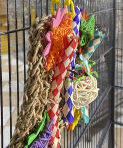 3. Para pájaros pequeños a medianos: Caiques, Conures del Sol, Mini Guacamayos, Lesser Sulfer Crested, Cockatoos Citron, Cockatoo Goffin, Pionus, Conures Reina de Bavaria, periquitos Quaker, Senegals disfrutarán de este juguete colgante.