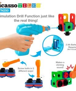 Características: EDUCATIVO E INSPIRADOR: ¡Este juguete de bloques de construcción STEM mejora la lógica y las habilidades para resolver problemas mediante el juego interactivo e intuitivo! ¡El aprendizaje STEM y la educación creativa temprana son el factor clave para el éxito en los entornos cambiantes de hoy. IDEA DE LIBRO GRATIS: ¡El libro de ideas GRATIS paso a paso destaca instrucciones que permiten a los niños crear más de 50 ideas y 16 instrucciones de vista explotada paso a paso con gráficos coloridos! TODO LO QUE UN INGENIERO NECESITA: Incluye taladro eléctrico (requiere baterías no incluidas) y trinquete con mecanismos de clic audibles que imitan la herramienta real para entrenar la habilidad motriz fina y fomentar la coordinación mano-ojo. También ofrece características reversibles para hacer que el proceso de ensamblaje y desmontaje sea divertido, rápido y fácil. Caja de almacenamiento incluida para permitir a los niños mantener el conjunto de juguetes de bloques de construcción de construcción en la caja. ENTRETENIMIENTO SIN FIN: ¡Divertido para un solo jugador o múltiples fiestas en grupos como colaboración en equipo para niños y niñas de 3 años en adelante, niños escolares, niños preescolares, tareas en el aula, currículo adicional y más! ¡Las posibilidades de diseño versátiles y de código abierto pueden ayudar a fomentar la creatividad e inteligencia de los niños! HECHO DE MATERIALES SEGUROS PARA NIÑOS, NO TÓXICOS, LIBRES DE BPA y plomo para garantizar calidad y seguridad. En la caja: – LIBRO DE IDEAS GRATUITO con más de 50 guías a todo color que incluyen 16 instrucciones de vista explotada paso a paso – 250 piezas coloridas que incluyen engranajes, bloques, tornillos, ruedas, destornillador y más! – Taladro eléctrico