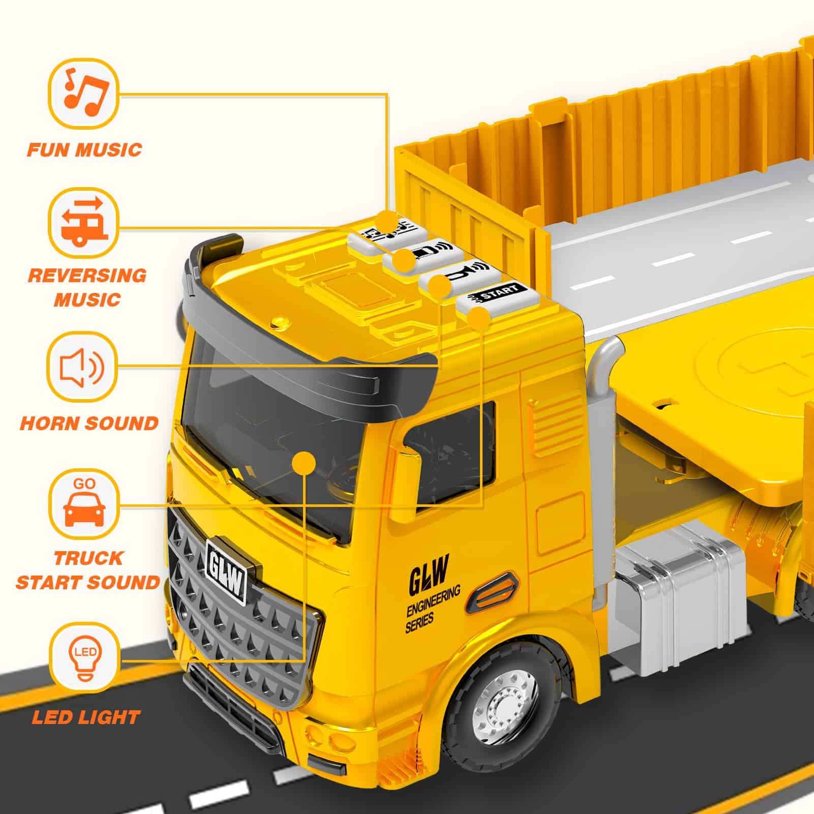 Se recomienda el uso de los juguetes de camiones de construcción para niños mayores de 3 años. Usar bajo supervisión directa de un adulto. Si tiene alguna pregunta, por favor contáctenos, le proporcionaremos una solución satisfactoria.