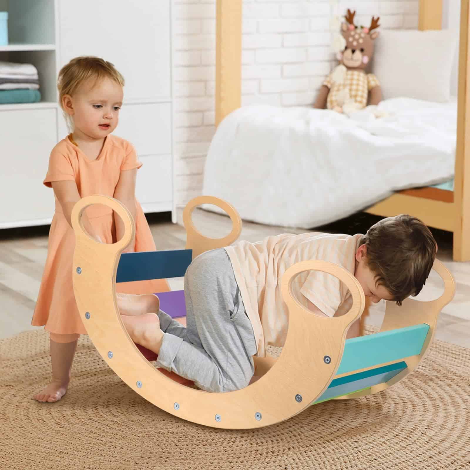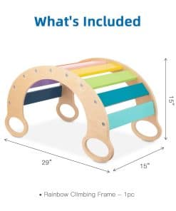 1. BALANCÍN DE ARCOÍRIS – Con 9 tableros lisos bellamente pintados, nuestro balancín de arcoíris realmente se ve increíble. La pintura a base de agua cumple con todos los estándares de seguridad de EE. UU.