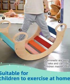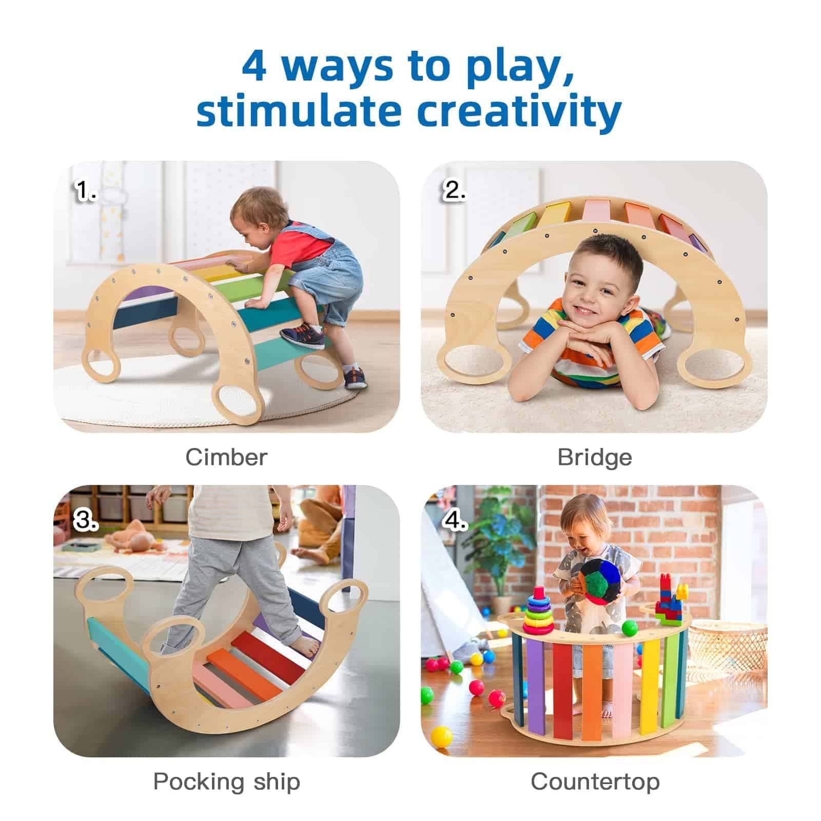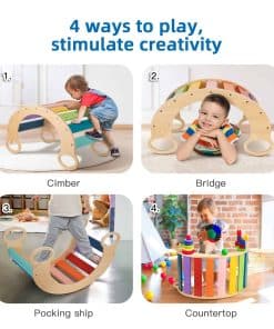 2. Debido a su versatilidad, el balancín de madera para niños permite a los niños construir sus propios escenarios de juego imaginativos. Se puede utilizar como balancín, balancín, arco de balancín, triángulo de escalada, un puesto de tienda y como marco de escalada montessori para niños.