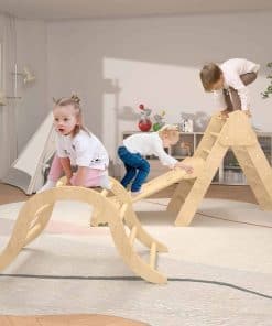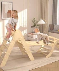 1. Triángulo Pikler – La naturaleza abierta del Triángulo Pikler fomenta la creatividad, permitiendo que los niños lo usen como una fortaleza, una nave espacial o cualquier cosa que su imaginación desee.