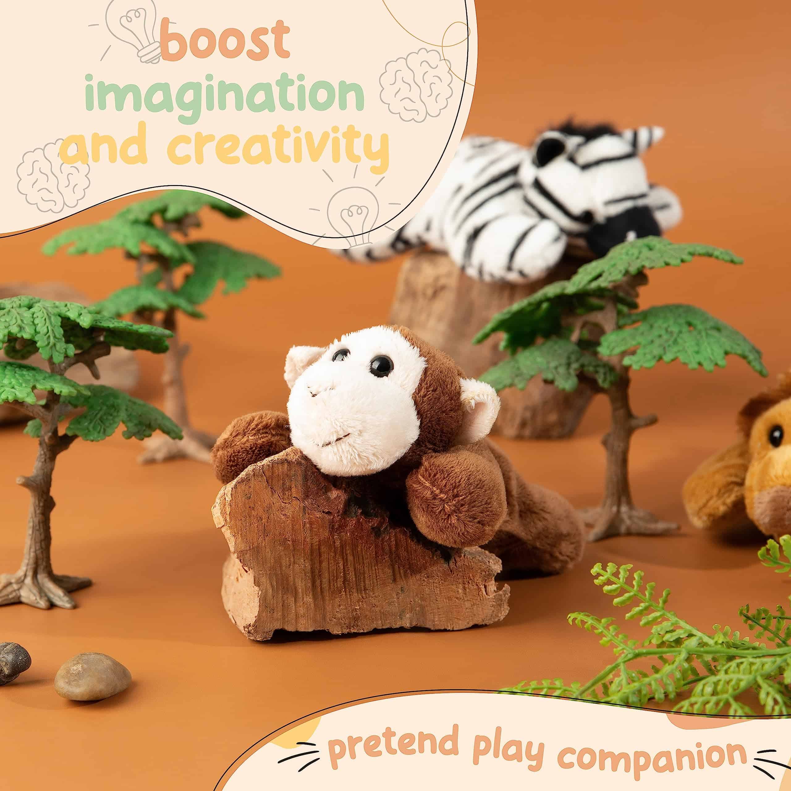 Este set ofrece la forma perfecta de comenzar o expandir la colección de monos de peluche de tu hijo. ¡Puedes mezclar y combinar diferentes sets o conseguir unos cuantos de tu animal favorito! Estos amigos adorables de la jungla son mucho más que un juguete; para un niño pequeño, un peluche es un compañero con el que pueden interactuar y relacionarse. Los monos de peluche permiten a los niños representar diferentes escenarios y explorar emociones que aún no comprenden totalmente, practicar habilidades recién aprendidas y construir su sentido de independencia.