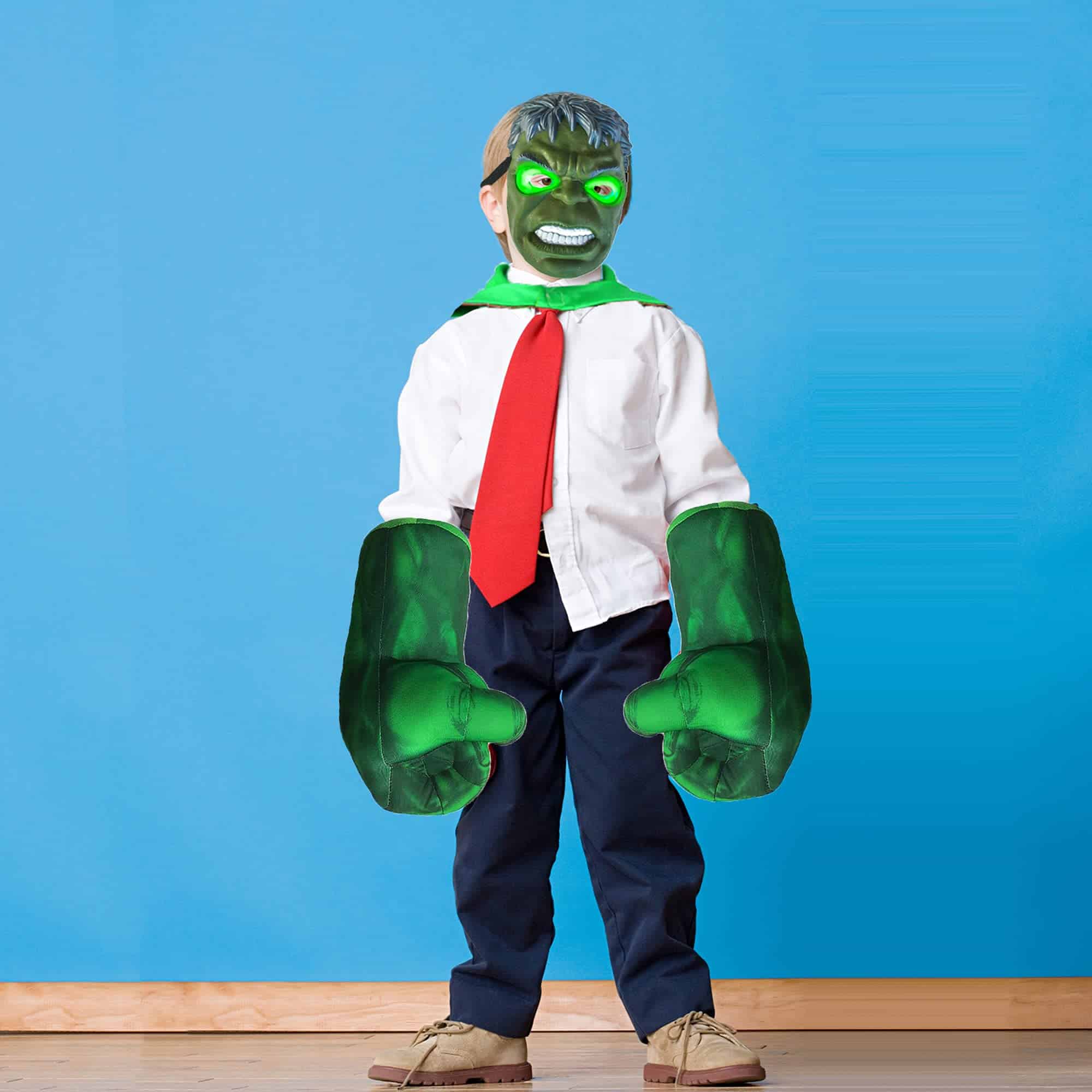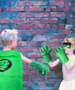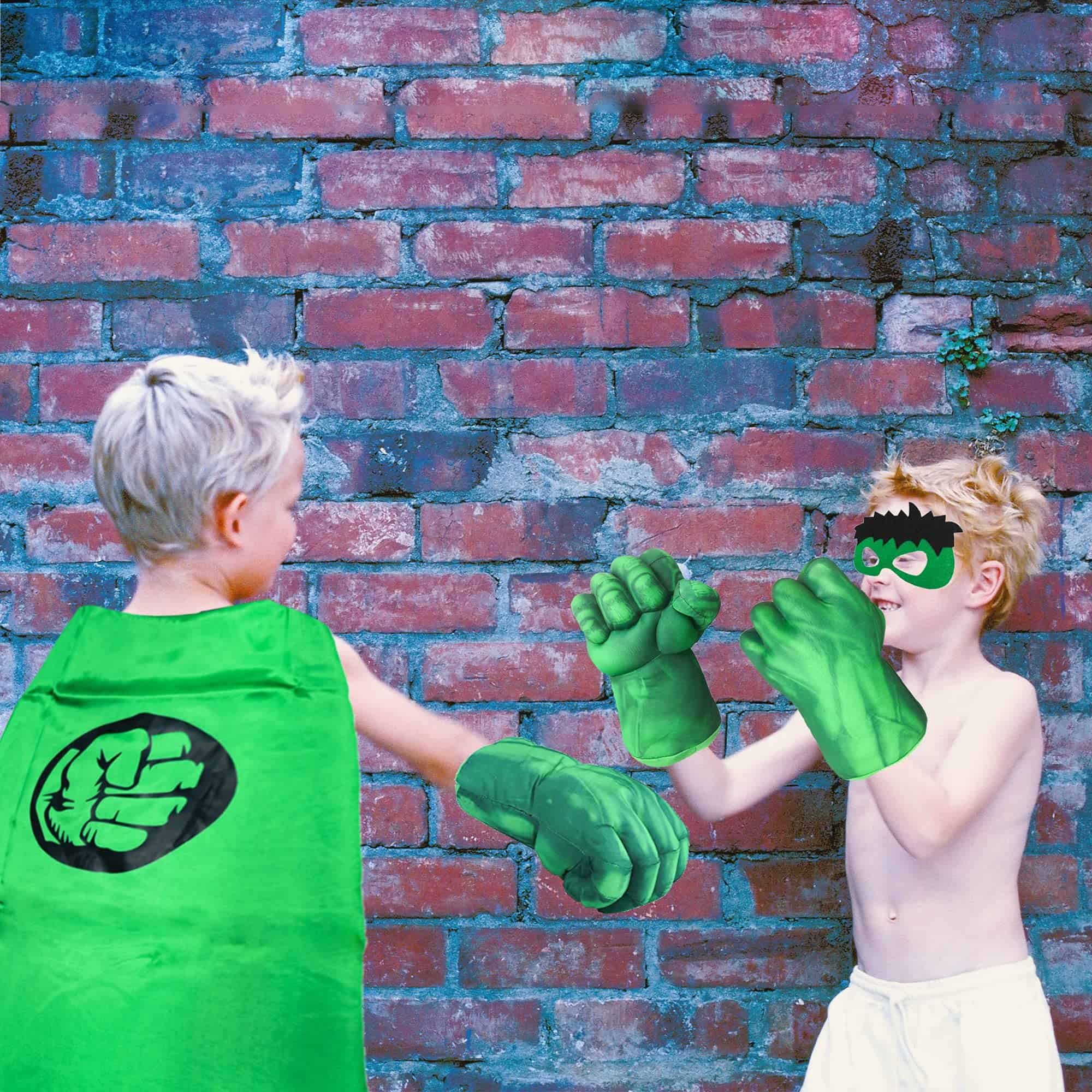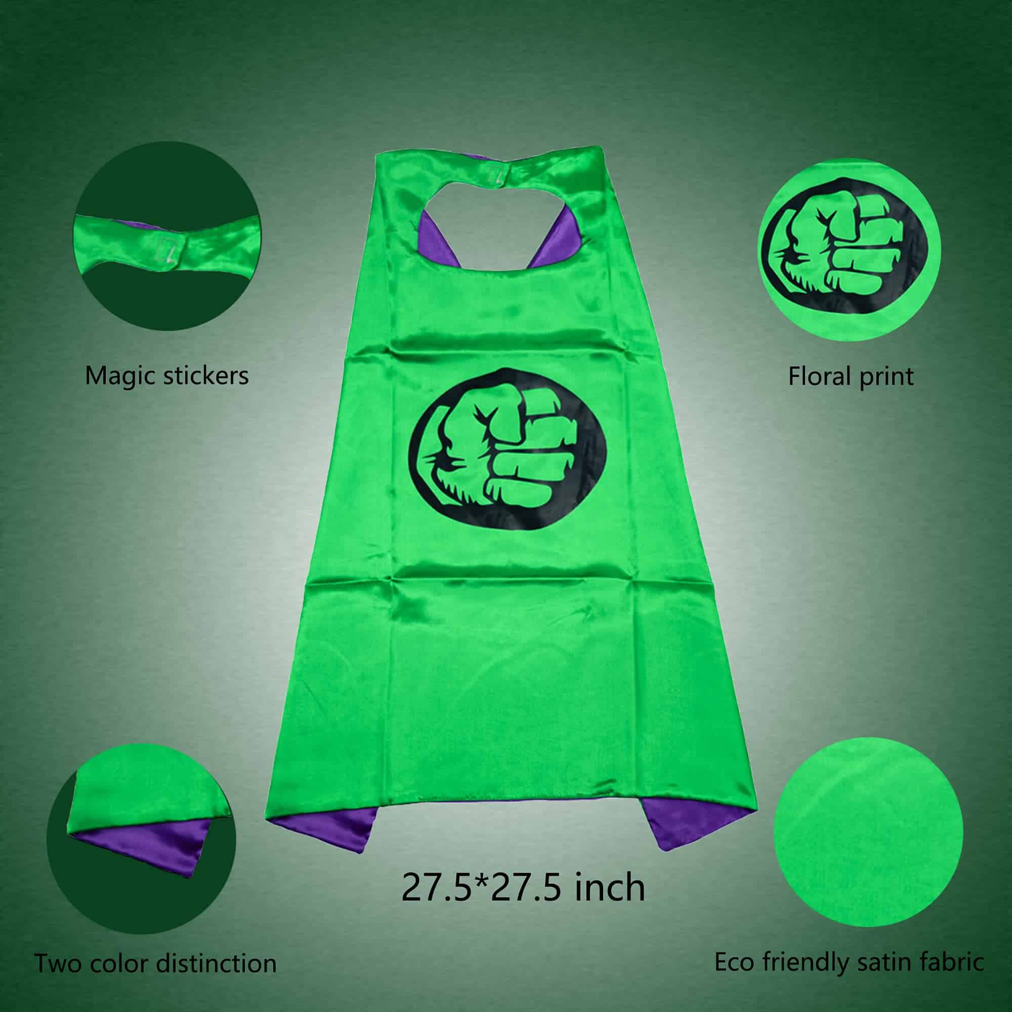 El manto de seda se balancea con el viento, para que los niños puedan experimentar la sensación de justicia de los superhéroes mientras corren. ¡El puño vívido de Hulk te convierte en un Hulk de la vida real, ponte los guantes y te sentirás como tu Superhéroe Favorito de Golpes! La longitud del manto y el tamaño de los guantes son adecuados para adultos y niños. ¡Puedes jugar a juegos de interpretación de roles con tu hijo y disfrutar del tiempo divertido con ellos!